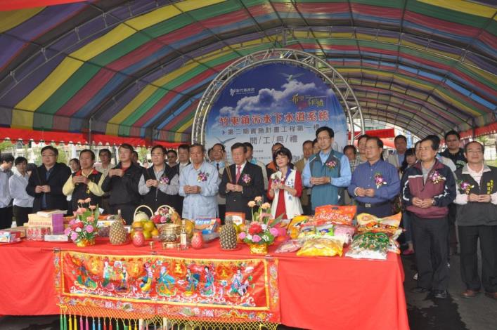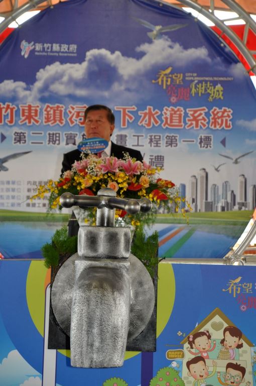 要提升民眾的環境生活品質,污水下水道系統已成為先進國家的基礎建設,在就職將滿4週年前夕,新竹縣長邱鏡淳16日上午舉行竹東鎮污水下水道系統第2期實施計畫工程第一標開工典禮,期待再提昇用戶接管普及率,持續打造更優質生活環境及健康社會。邱縣長今天上午率縣府團隊於竹東鎮中正路與工業一路交叉口,舉行污水下水道第2期第1標的開工典禮,縣議員羅吉祥、郭遠彰、上官秋燕、盧東文、立委徐欣瑩的助理,以及多位地方民眾到場觀禮,由於污水下水道系統是一種表面無法討喜的基礎建設,但卻是一個先進健康國家的象徵,因此地方人士對此大手筆工程津津樂道。為持續污水下水道的推動與發展,新竹縣政府依第一期優秀的執行成果不斷向中央爭取預算,100年5月13日經內政部營建署內核定總經費19.58億元,其中94% 由營建署分期分年編列預算補助,6% 則由新竹縣政府負擔。「新竹縣竹東鎮污水下水道系統第二期實施計畫」為第一期之延續工程,100年度開始進行,計畫涵蓋面積達148公頃,主要位於新竹縣竹東鎮南側區域。計畫內容以污水管線主次幹管、分支管網及用戶接管工程建設為主,其次為水資源回收中心第二期工程及其他配合計畫。邱縣長指出,此實施計畫為期六年,預計105年完成,預期完成竹東鎮9,000戶用戶接管工程,工程效益除改善民眾居住品質與環境衛生外,並可提升竹東鎮用戶接管普及率約37.4%,提升新竹縣全縣用戶接管普及率約6.8 %。新竹縣政府自民國89年11月完成「竹東鎮污水下水道系統第一期實施計畫檢討暨截流方案規劃」後,91年起至99年執行計畫,共完成了竹東鎮水資源回收中心第一期建設、污水收集管網及竹東鎮用戶接管6,860戶,污水平均日處理量達10,500噸。同時提升竹東鎮用戶接管率28.52%,截至102年10月,連同竹北市污水下水道系統完成之用戶接管共17,971戶,提升全新竹縣用戶接管率達13.58%,在內政部營建署全國污水下水道污水處理率統計中,排名為全國各縣市(含五都)的第5名。目前第二期實施計畫第一標主幹管及用戶接管工程標,業已於102年12月完成發包,預計103年第一季動工,該工程將於竹東鎮中正路與東寧路埋設污水主幹管與進行中正路附近用戶接管約474戶,此外第二標亦已完成設計並將陸續辦理招標作業。縣政府工務處表示,施工期間若造成民眾生活與交通之不便,請鎮民多包函,縣政府設有「路平專線反映電話」(03-5559799)、「路平專案反應信箱」(http://pu.hsinchu.gov.tw/svc/CaseReactPage.asp)等多種案件通報系統,提供民眾多元化且便捷之意見反應管道。新聞資料來源:縣政府工務處下水道科 科長曾思凱 新聞聯絡人:陳志宏