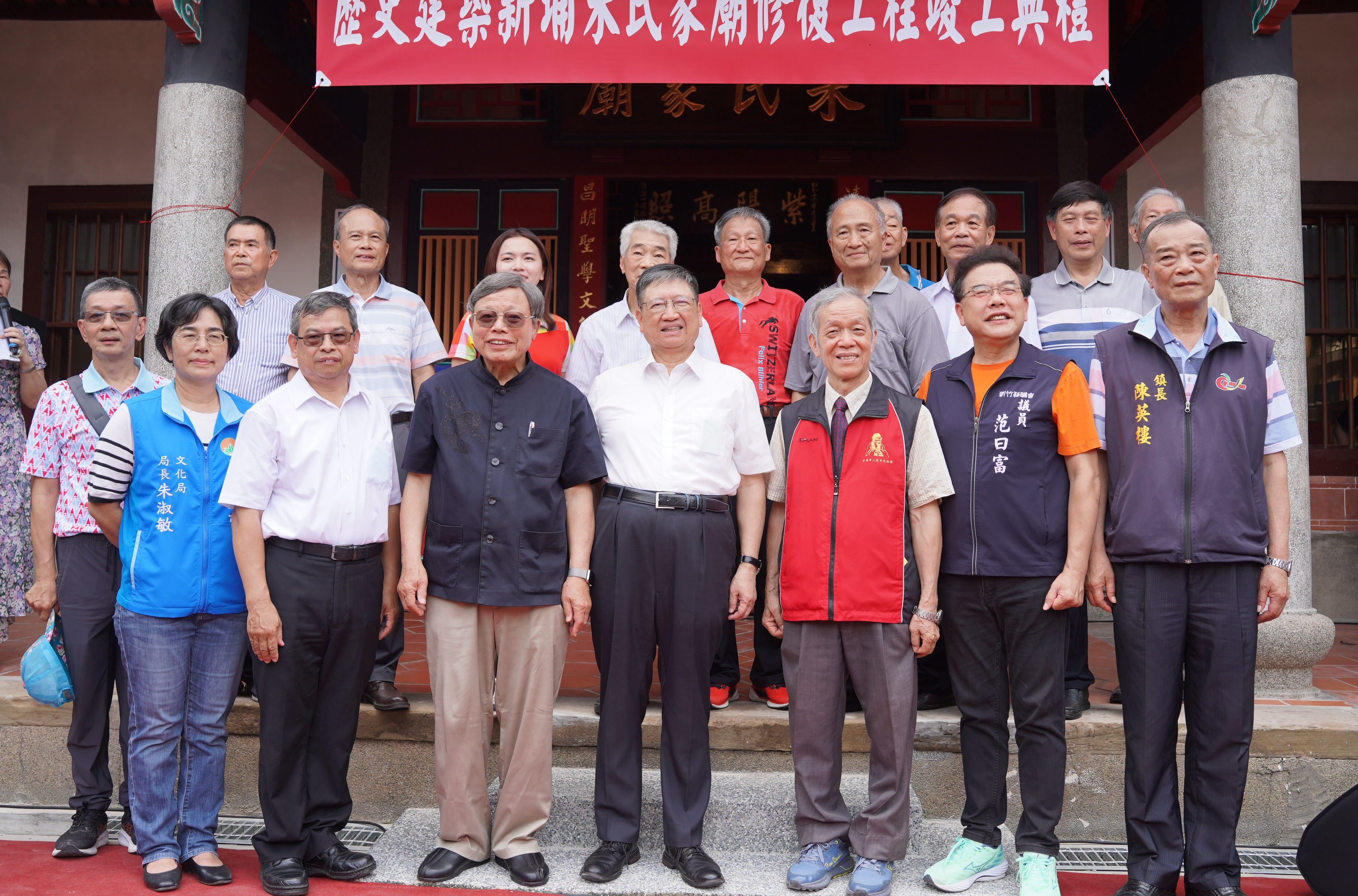 歷經1年8個月的修復工程,新竹縣歷史建築新埔朱氏家廟於今(7)日正式竣工,並舉行隆重的竣工典禮。新竹縣縣長楊文科、文化部文化資產局主秘張祐創、祭祀公業朱珍公管理委員會理事長朱建全、新埔鎮長陳英樓及多位地方民意代表與嘉賓出席,共同見證這座具有深厚歷史與文化價值的建築再現光彩。