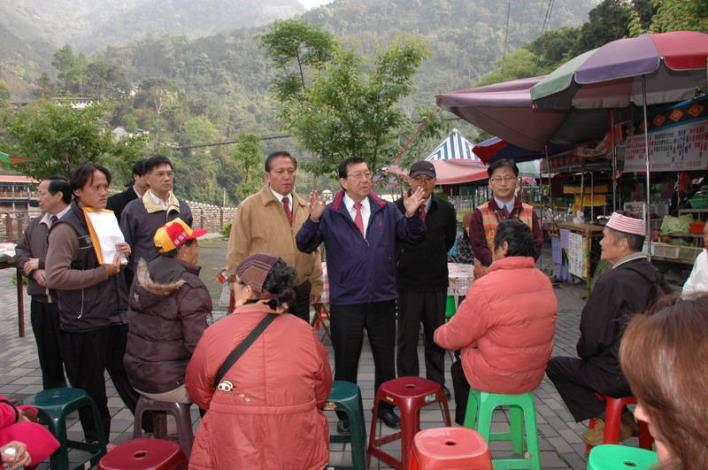 邱縣長表示,至於攤販問題,鄉公所應妥善處理,例如目前經濟部正在修擬溫泉法,如果法令許可,建議葉鄉長,在中國生產力中心協助下,輔導攤販納入民宿、溫泉業。邱縣長也建議鄉公所,應廣泛蒐集相關溫泉資料,像是傳說中的日據時代皇太子在清泉泡溫泉景象,這些具有故事性的劇情,才能有效吸引遊客的到來。