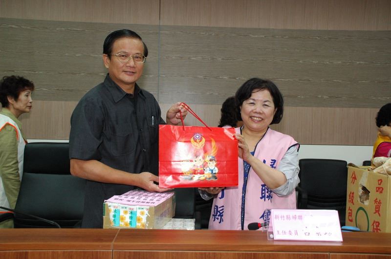 同時,警察局局長吳思陸及消防局局長林祥欽為感謝縣長夫人及縣內婦女團體的鼓勵,也分別致贈警察公仔及消防寶寶給與會的婦女團體,並分別合影留念。