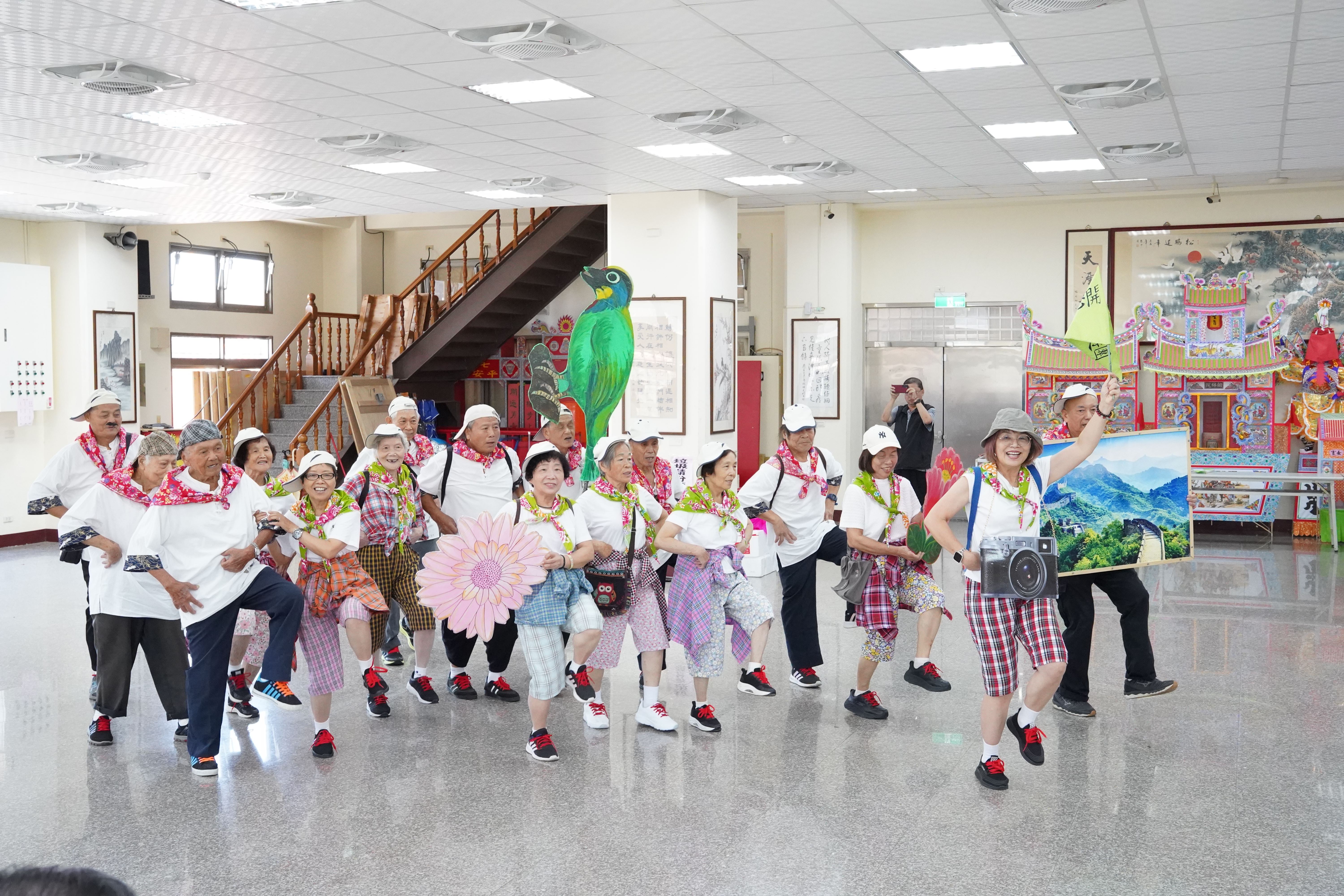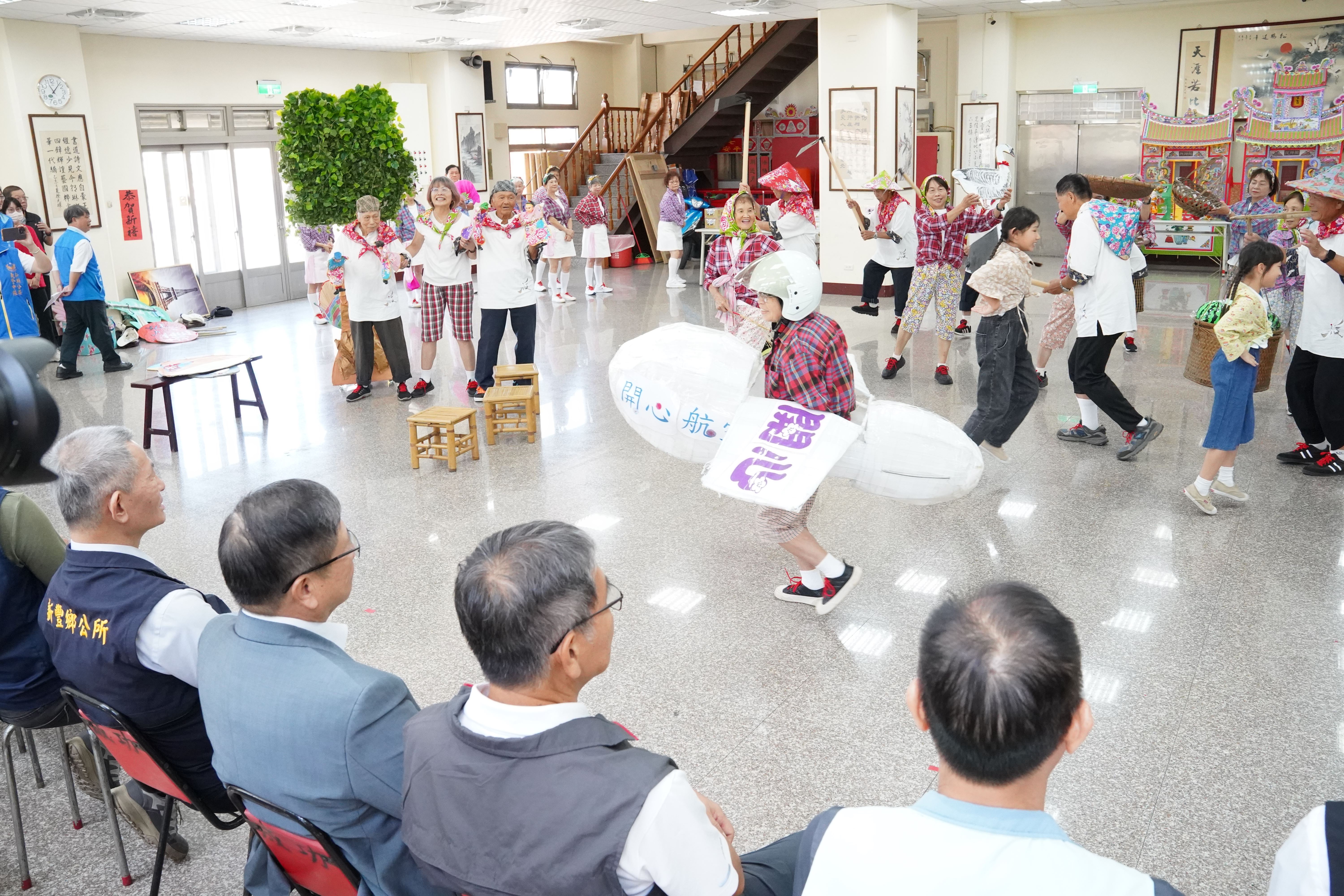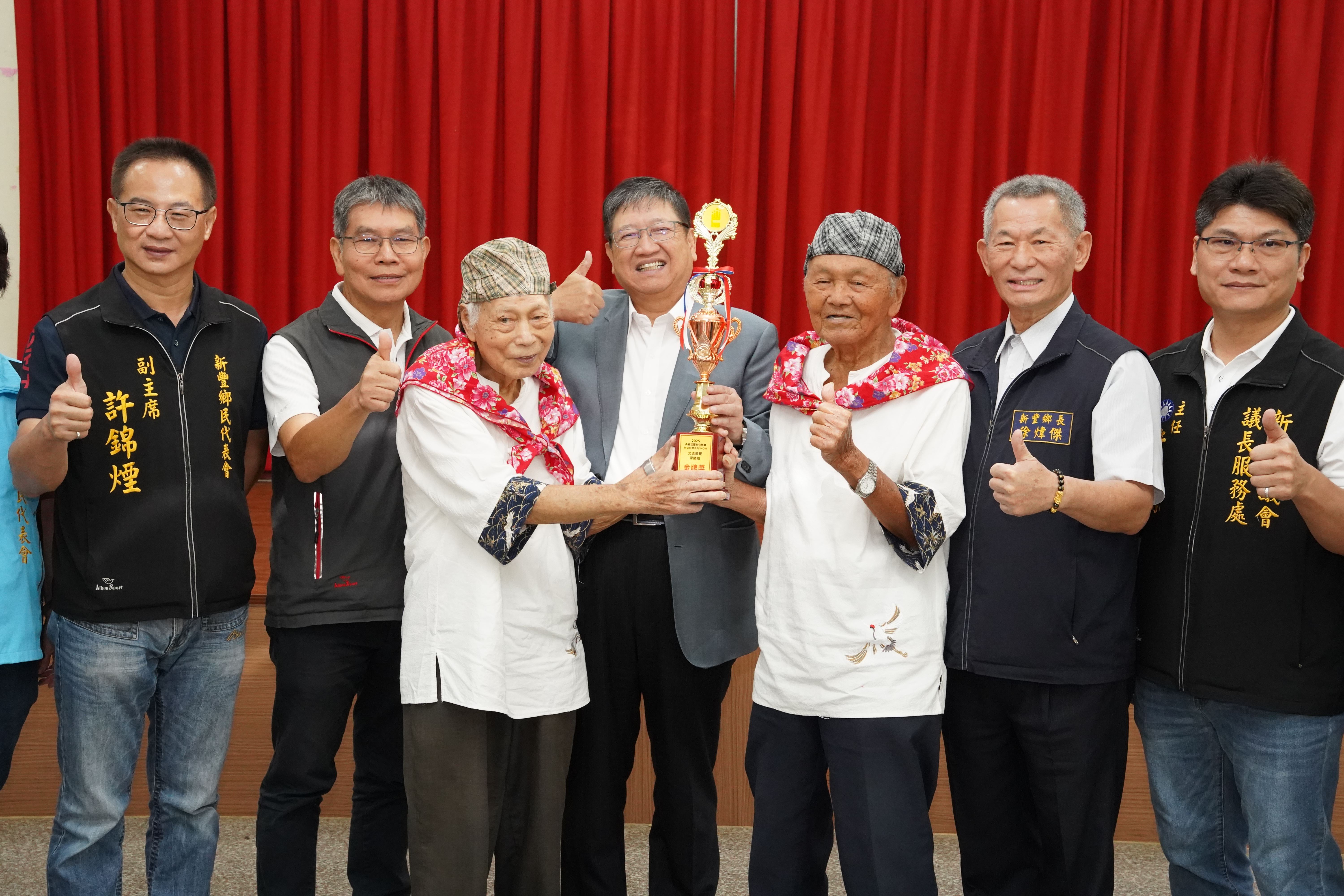 新豐鄉「天天開心隊」由一群平均年齡超過70歲的長輩組成,109年起參加活力秀賽事獲獎連連,今年成績再創高峰,在長者活躍老化競賽中,一連奪得縣內初賽及北區競賽雙金牌。楊文科說,這群長輩要從北區6縣市共26個隊伍中脫穎而出,以「不服老、不言累」的堅毅精神震撼全場,充滿活力的精彩演出贏得評審們一致的高度讚賞,真的不容易,是大家的榜樣!
