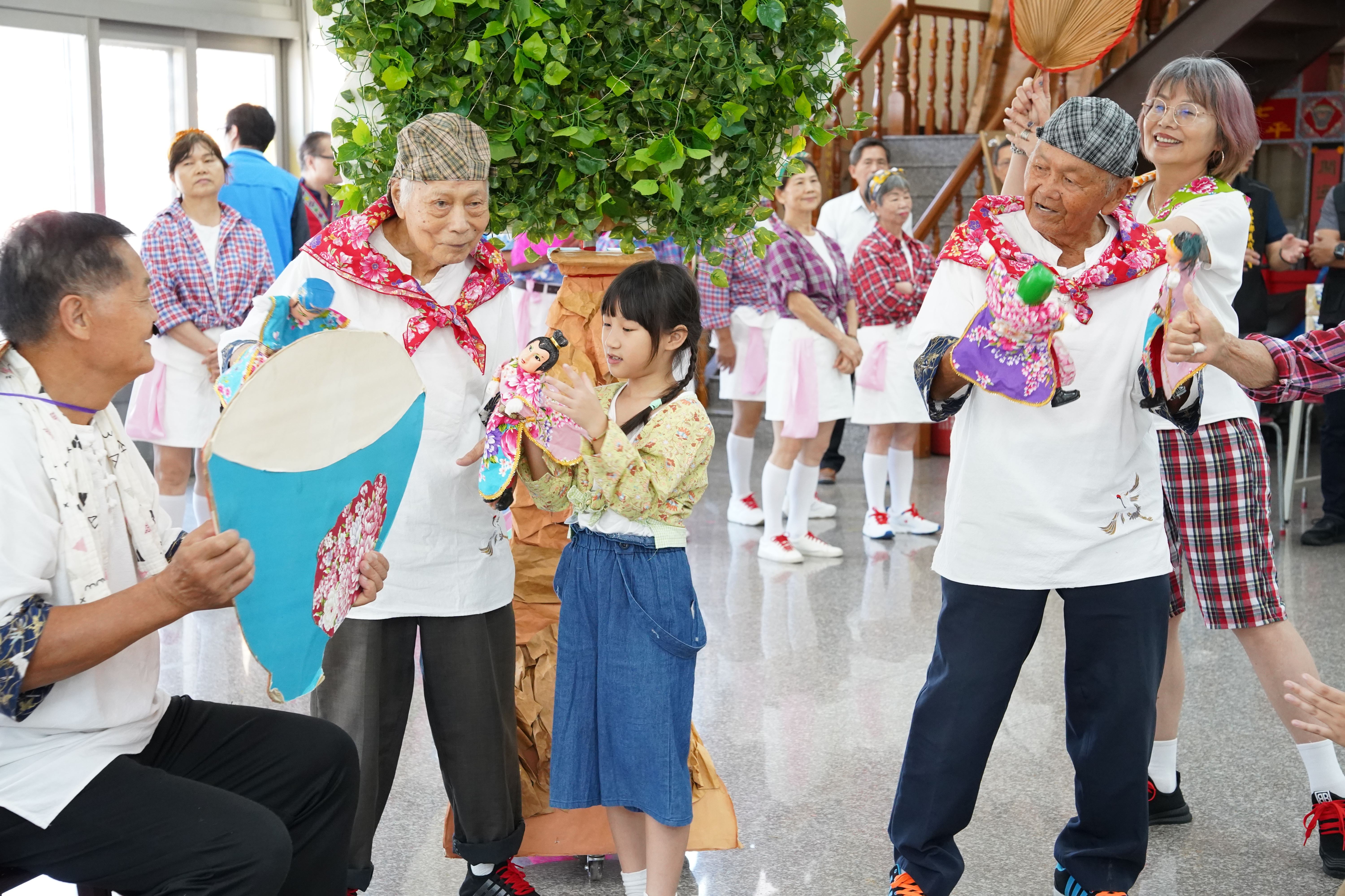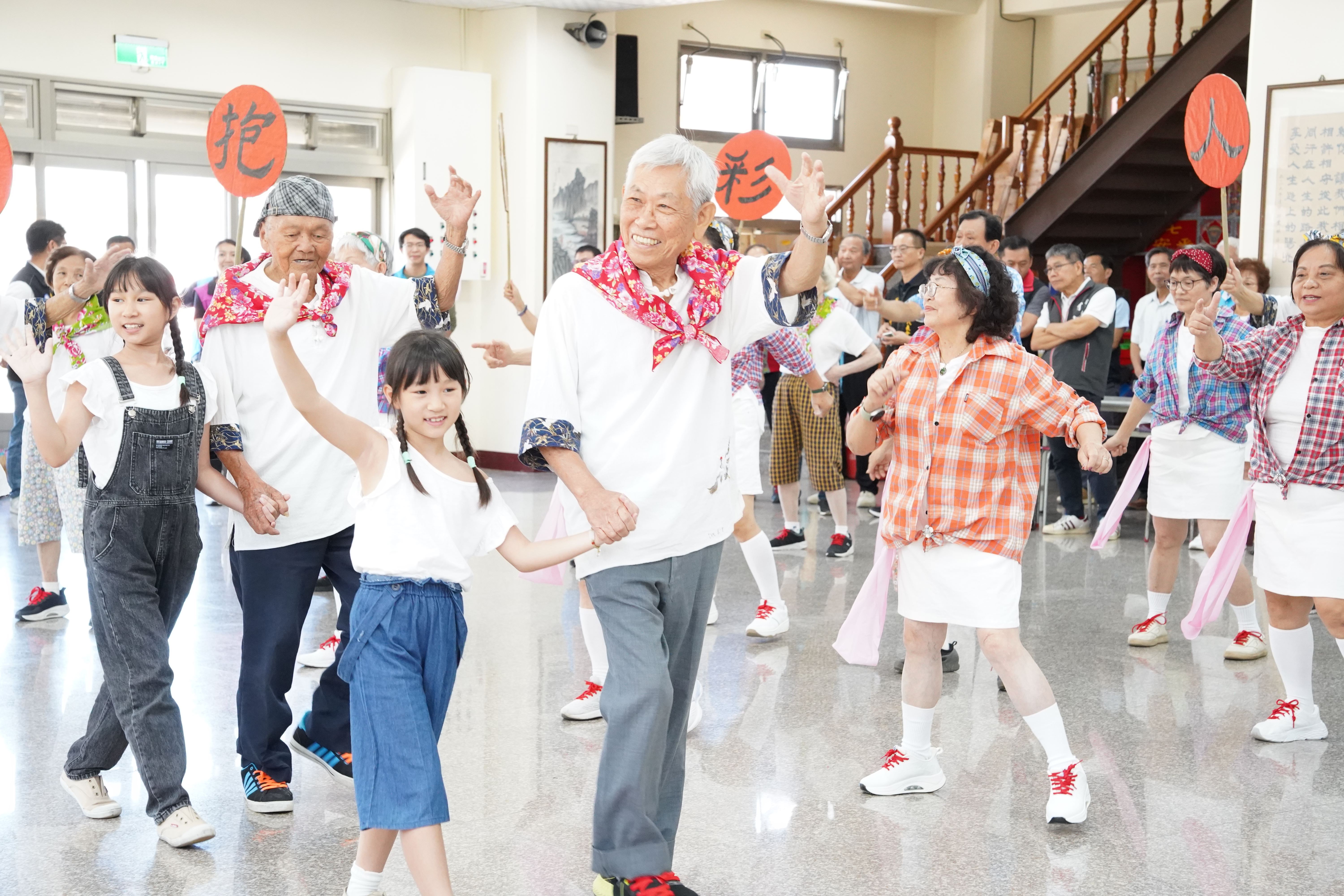 負責編舞的天天開心協會理事長曾郁晴表示,團員年齡層廣,最年輕7歲、最年長高齡104歲,因此她以「穿越時空,傳承客家記憶:聆聽歲月裡的溫暖幸福點滴」為主題,讓老中青幼所有團員帶領大家時光倒流,回到50年前的客家農村生活,那時候沒有3C產品、沒有手機,阿公們在樹下喝茶聊天,孩子們在旁邊玩耍,有時候玩起布袋戲講古,那就是最美好的時光。