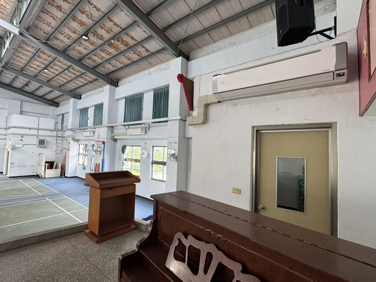 員崠國小校長郭成隆表示,員崠國小活動中心是校內外活動的重要場域,除體育教學及球隊練習外,過去舉辦畢業典禮、母親節等大型活動時,因活動中心無冷氣,悶熱環境不僅影響品質,甚至曾發生學生中暑。特別感謝縣府核定補助學校「活動中心電力改善暨冷氣裝設工程」,裝設16KW分離式冷氣10台,並強化電力安全,讓場館轉型為舒適的多功能空間,預期提升學習動機,並促進家長與社區居民參與活動與會議。