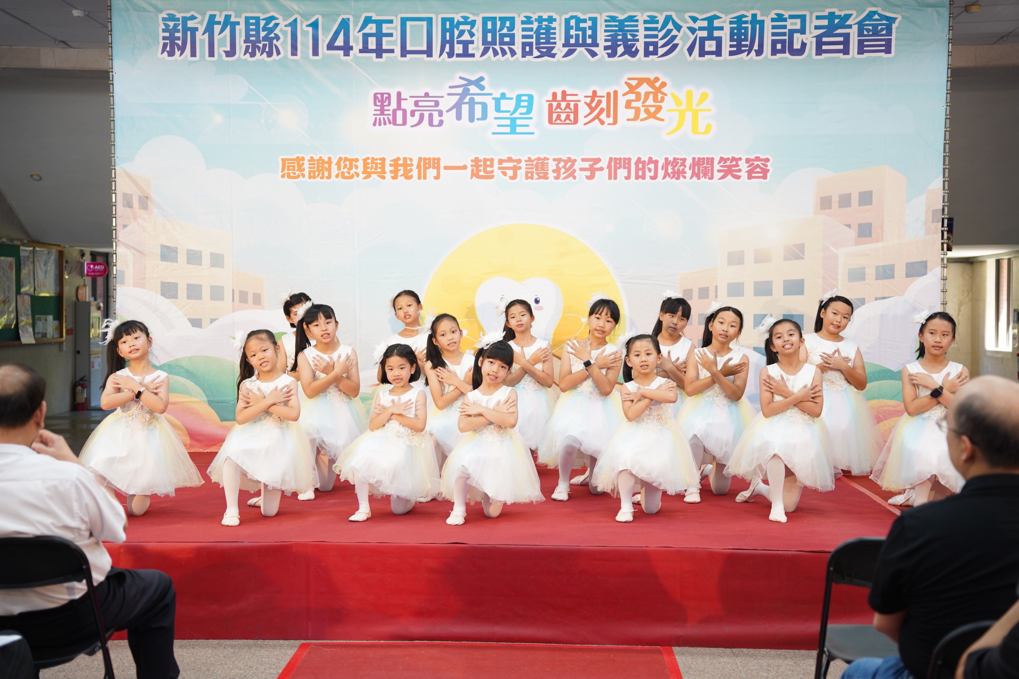 尖石鄉、五峰鄉、橫山鄉各校校長均出席「新竹縣114年口腔照護與義診活動記者會」,表達對於義診活動的支持,活動由橫山國小學生以一曲「聽我說謝謝您」開場,展現對義診活動的感謝。