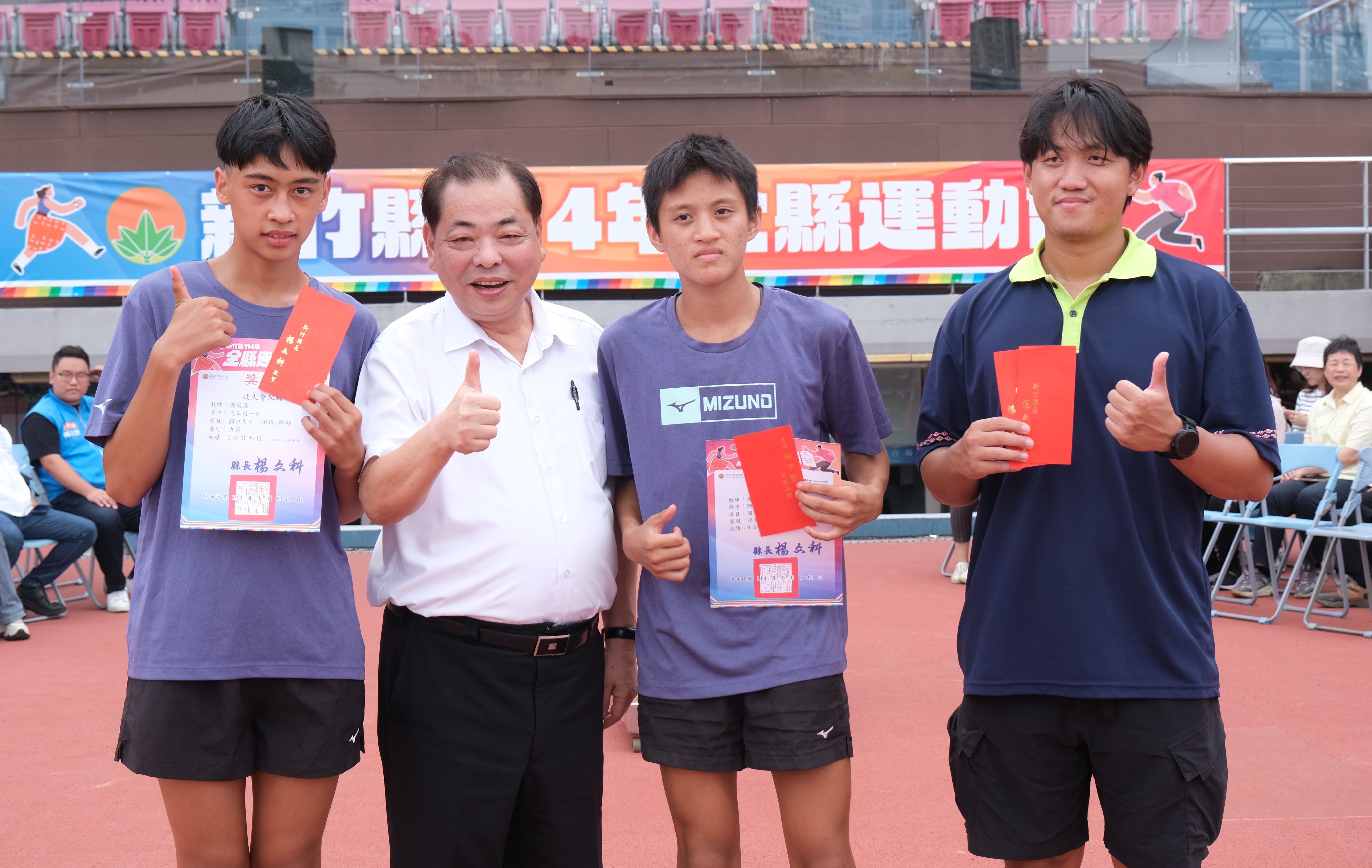 新竹縣副縣長陳見賢在閉幕典禮上表示,恭喜所有得獎的選手及教練,這次各位選手表現很好,感謝大家的努力,屢破大會的紀錄,勉勵在場的學生運動員「有好的身體才有未來」,一定要照顧好自己的健康,而最直接的方式就是保持良好的運動習慣。