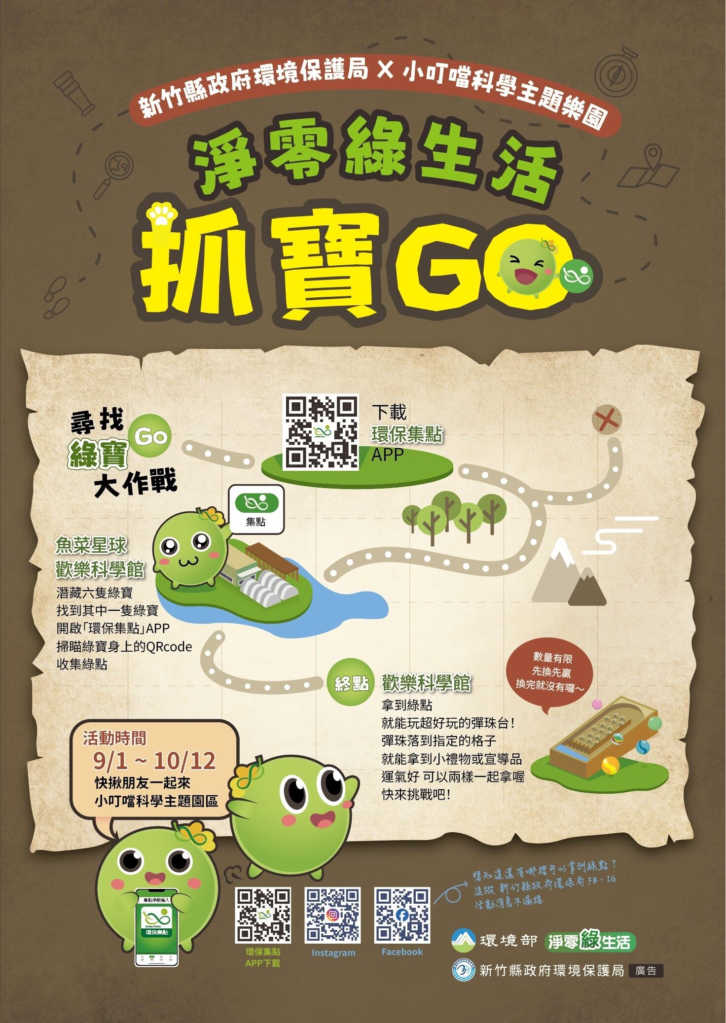 活動二是10月12日前到小叮噹科學主題樂園尋找「綠寶」,即可獲取綠點,並於歡樂科學館彈珠台兌換好禮。新、舊會員皆能透過註冊或推薦機制,享受更多抓寶、彈珠檯遊戲回合與贈點。活動設計「綠生活尋寶地圖」兼具教育與趣味,讓親子在遊樂中學習環境永續,增添寓教於樂的體驗價值。