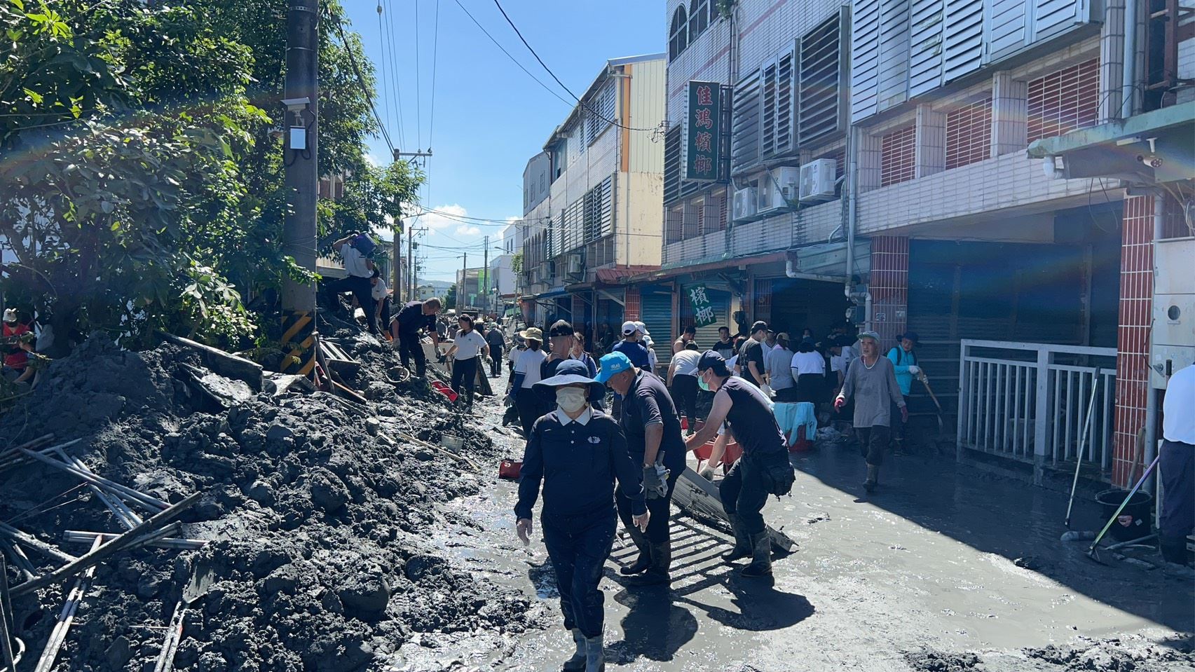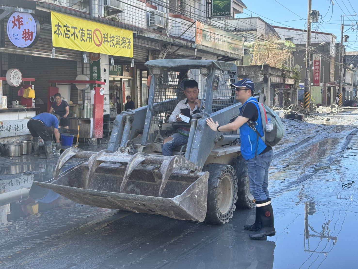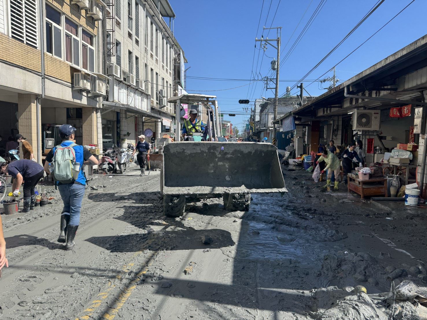 水車除了清洗路面,也支援家戶清洗用水,並整合現場支援的民間機具;志工人力則進入家戶整理屋內清出雜物,由新竹縣政府大型機具清運至指定地點,已陸續清理超過30噸之淤泥及廢棄物,全力協助受災戶恢復家園。