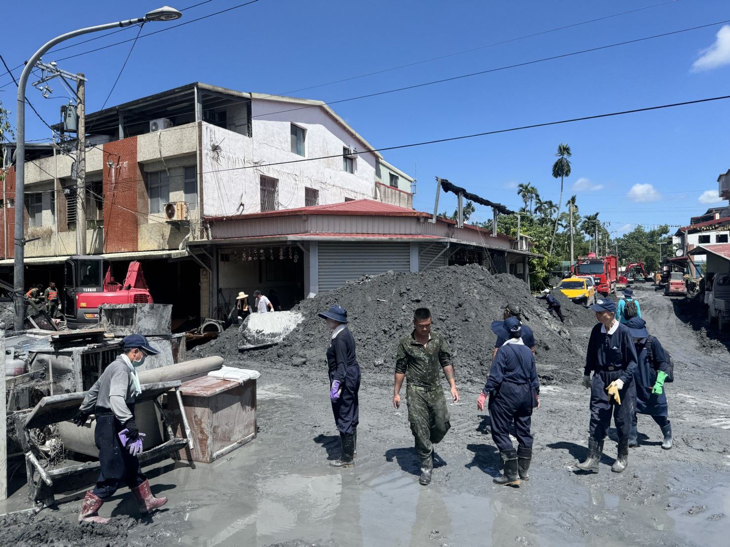 工務處表示, 20餘輛機具昨日歷經近10小時路程,於傍晚5時於光復糖廠前進指揮所集合完畢,今日開始協助災民清理家園,機具包含卡車9台、小山貓5台、挖土機3台、水車1台及板車2台。