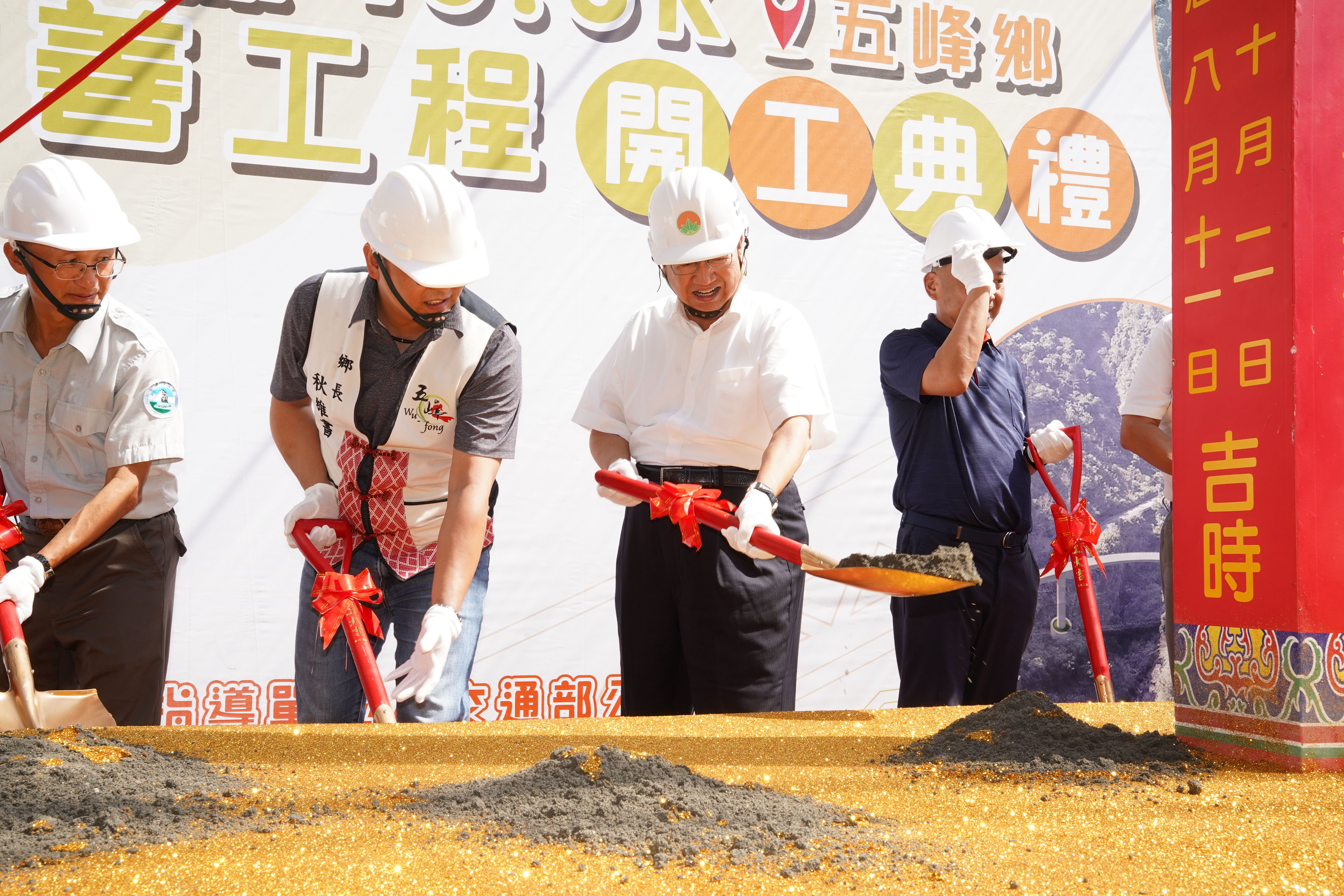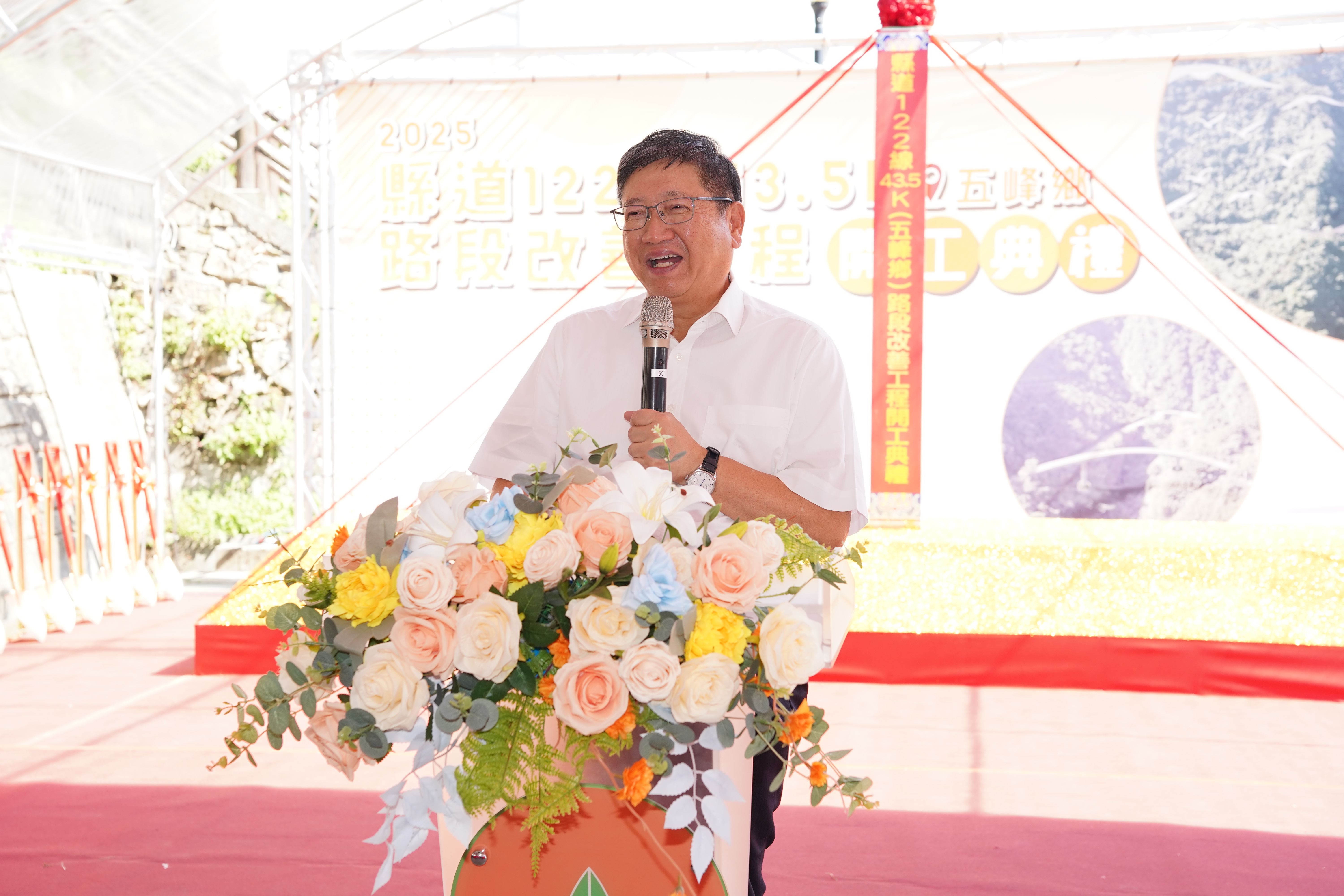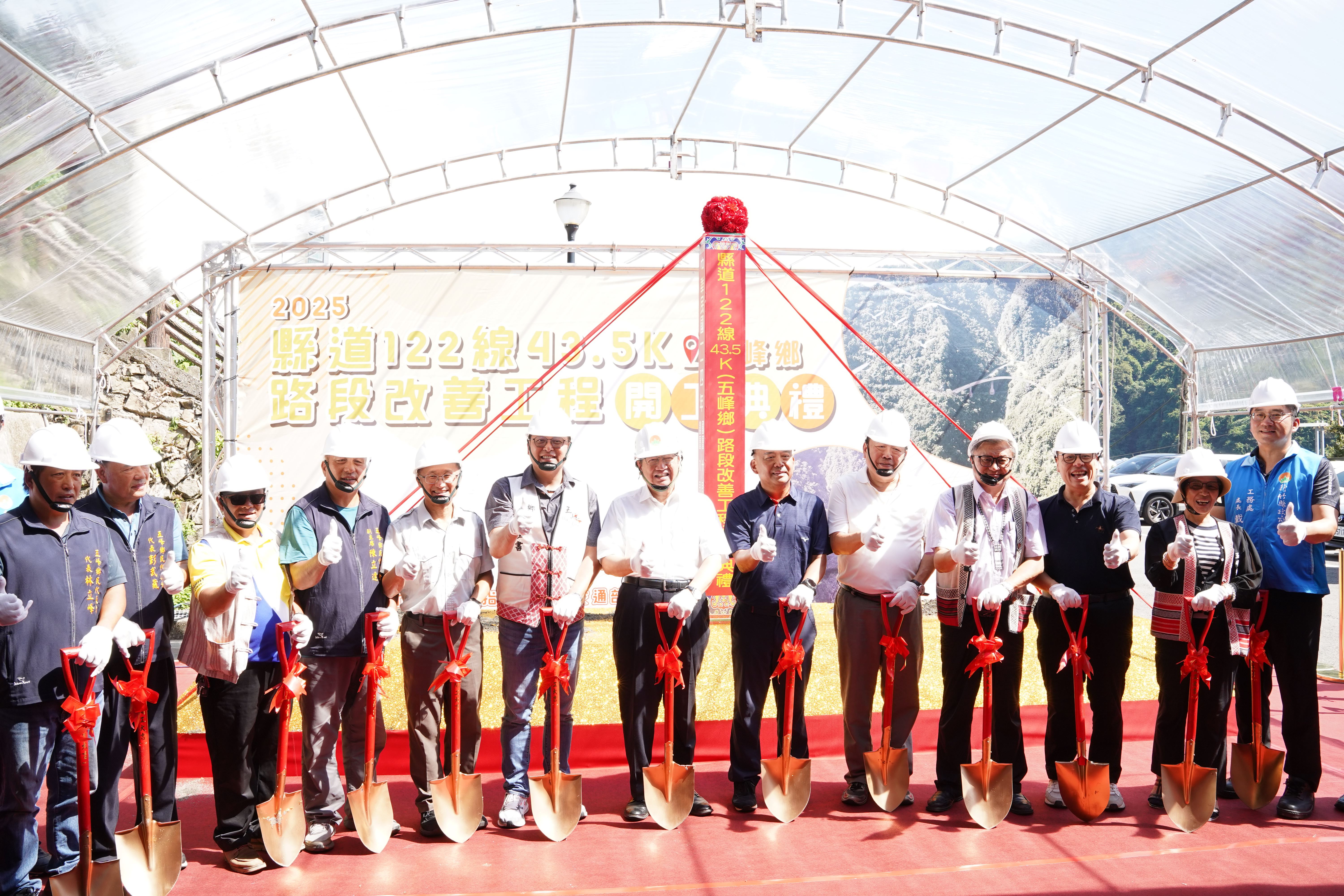 縣長楊文科今早率縣府團隊,與立委盧縣一、前立委孔文吉、交通部公路局北區養護分局長謝俊雄、雪霸國家公園管理處長林文和、縣議員張益生、五峰鄉長秋維書、五峰鄉代會主席秋美玉等地方民意代表及居民共同出席開工典禮,祈求工程順利圓滿,也感謝地方民意代表及鄉親一路支持,並承諾將嚴格督導施工品質與安全管理,確保工程如期如質完工,打造更安全便捷的交通環境。