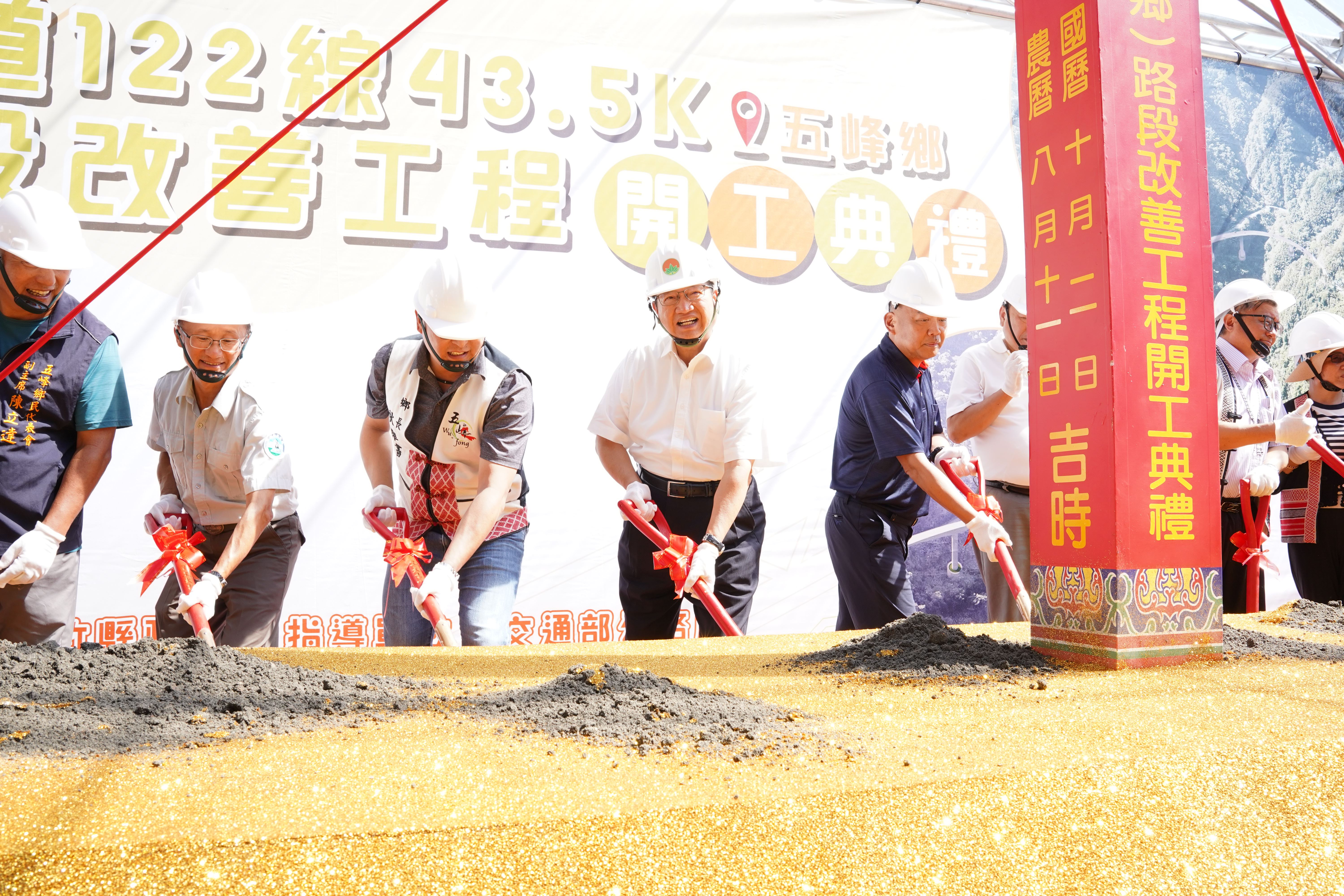 工務處指出,楊縣長上任後積極推動十大交通建設,預估總經費高達164億元,目前已有6案獲中央核定補助其建設經費達60億元,且連同「縣道122線43.5K路段改善工程」在內,已經有3案順利動工。本工程為五峰鄉歷年來規模最大的補助工程,完工後將有效改善偏鄉通勤、農產運輸與觀光旅遊交通安全品質,象徵新竹縣交通建設往前邁進一大步。