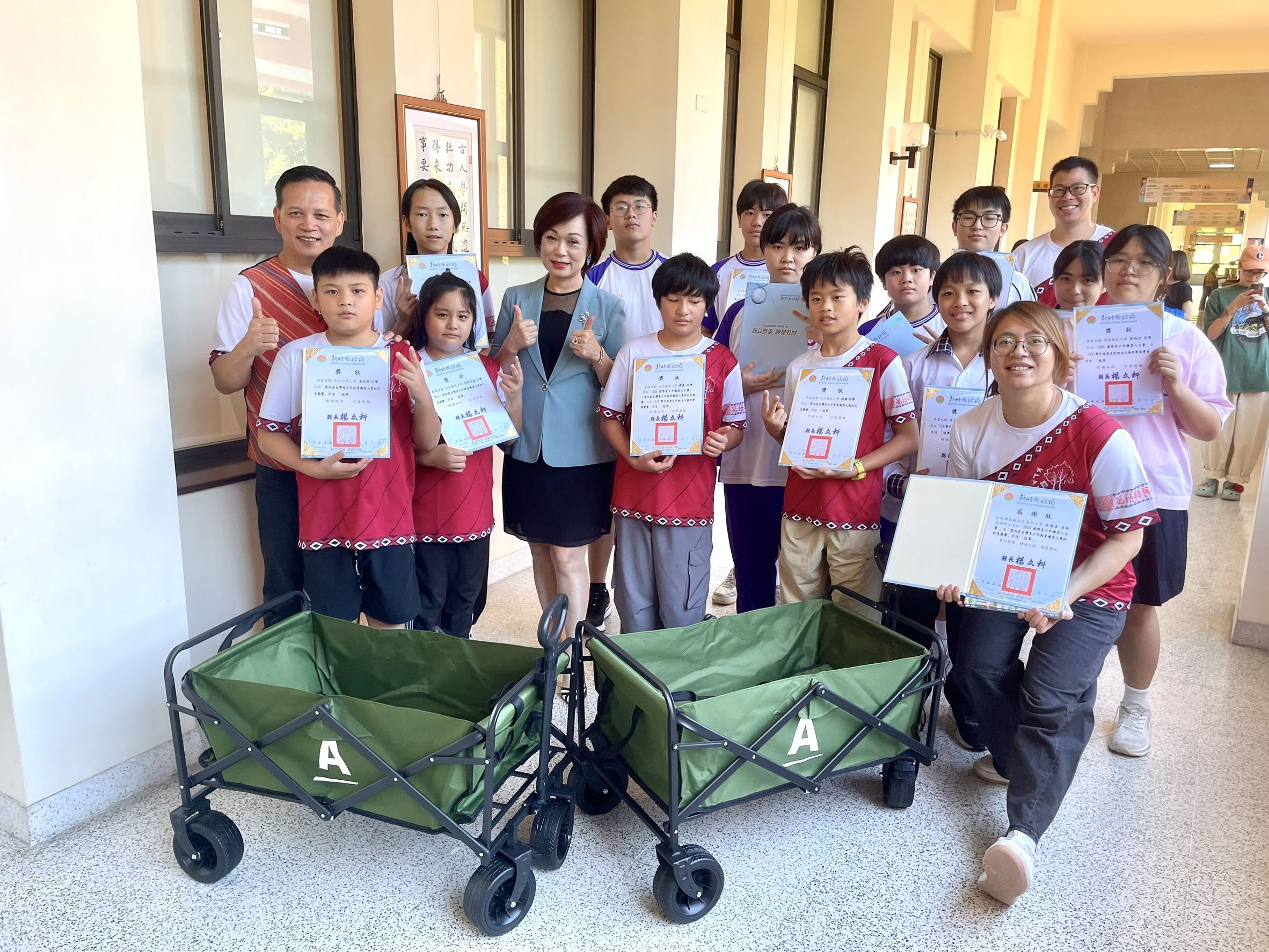 安麗台灣今天(10月7日)與新竹縣政府攜手舉行「愛心推車傳遞希望」捐贈儀式,正式捐贈450台「安麗越野加寬摺疊推車」,提供新竹縣63所非山非市及偏遠地區國中、小學校使用,平均每所學校可獲得約6台越野推車,新竹縣長楊文科於主管會報中頒發感謝狀,盼能有效解決學校舉辦各項活動及日常物資搬運不便的問題。