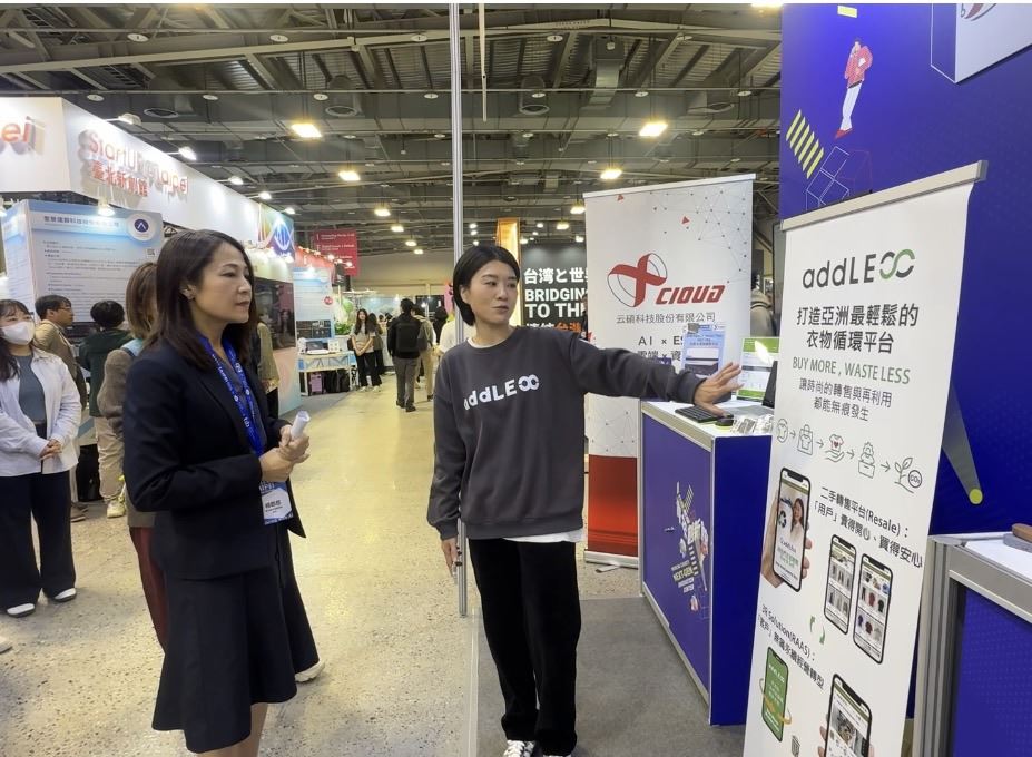 「跨境雲科技股份有限公司」承襲資安與系統整合底層,提供政府與大型機構雲端、數位治理與智慧展示的一站式方案;「加減數位有限公司」打造衣物循環生態,結合AI定價、零廢衣供應鏈與「衣物減碳計算機」量化ESG成效;「云碩資產管理股份有限公司」提供全方位智慧科技整合方案,展現新竹從研發到市場、從在地到國際的實戰能量;「先進材股份有限公司」以竹纖維生質複合材料與「竹AI×碳計算」推動可堆肥、可量化的減塑包材,現場也展出成品,另外值得一提的是在基地的輔導下,該公司也榮獲今年11月經濟部頒佈的新創事業獎。