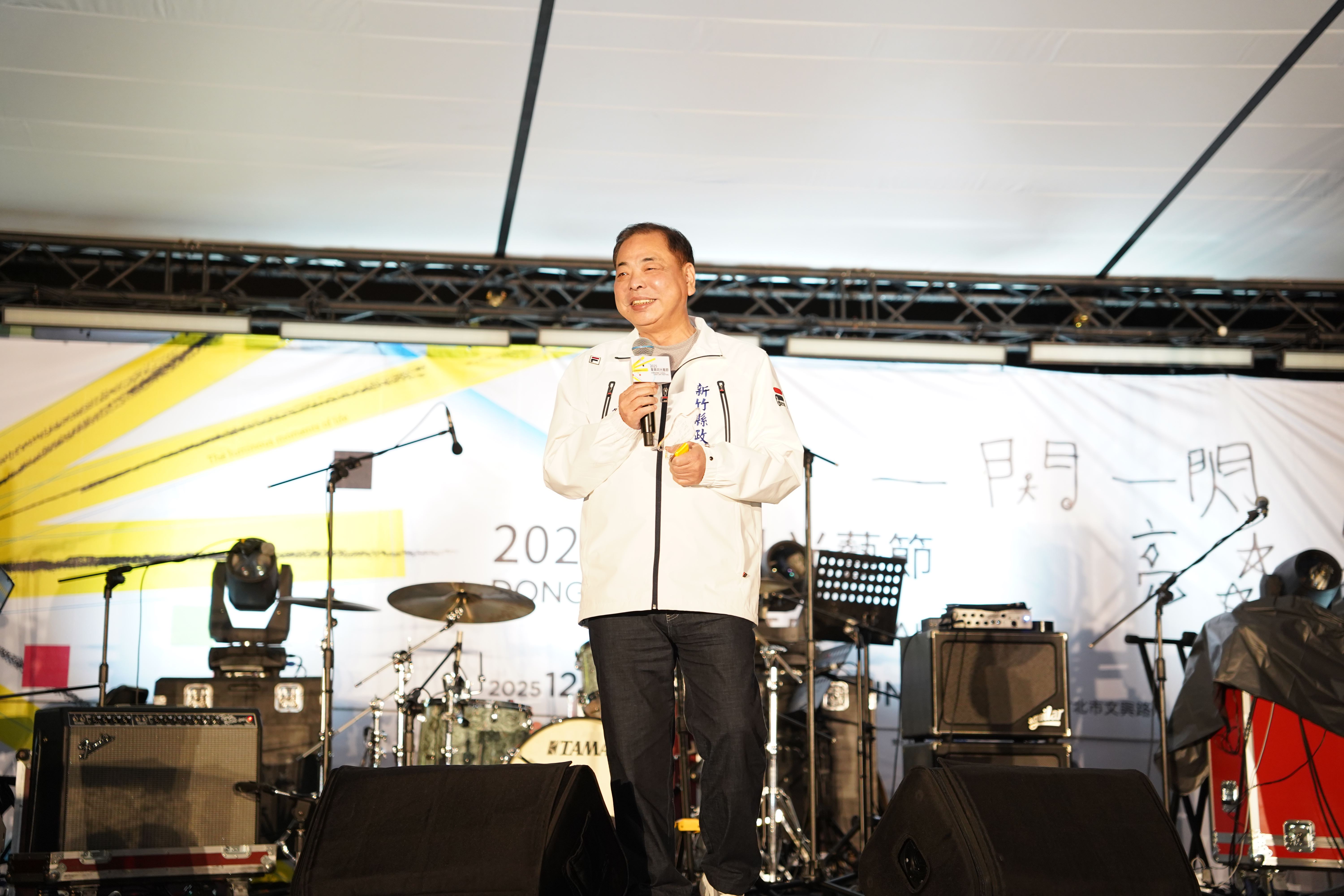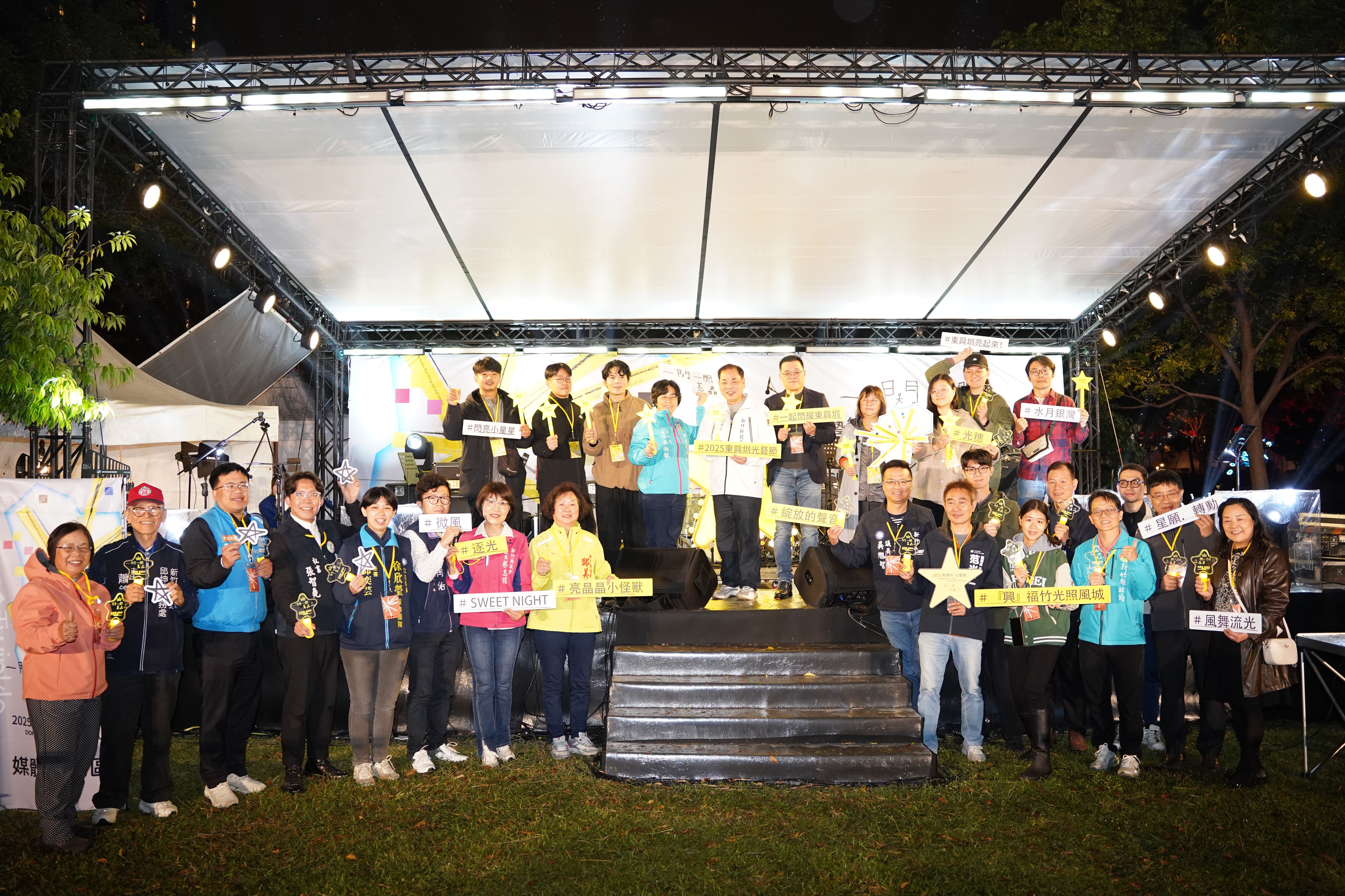2025東興圳光藝節今(13)日在竹北東興圳公園盛大開幕,副縣長陳見賢代表縣長楊文科出席點燈儀式,隨著星星手燈啟動,沿著水岸分布的8組光藝術作品瞬間亮起,將東興圳夜色化為一條閃爍的星光廊道。東興圳光藝節展期至115年1月4日,每週末皆規劃主題式展演舞台,邀請全國民眾走訪新竹縣,一同見證冬夜裡最美麗的城市風光。
