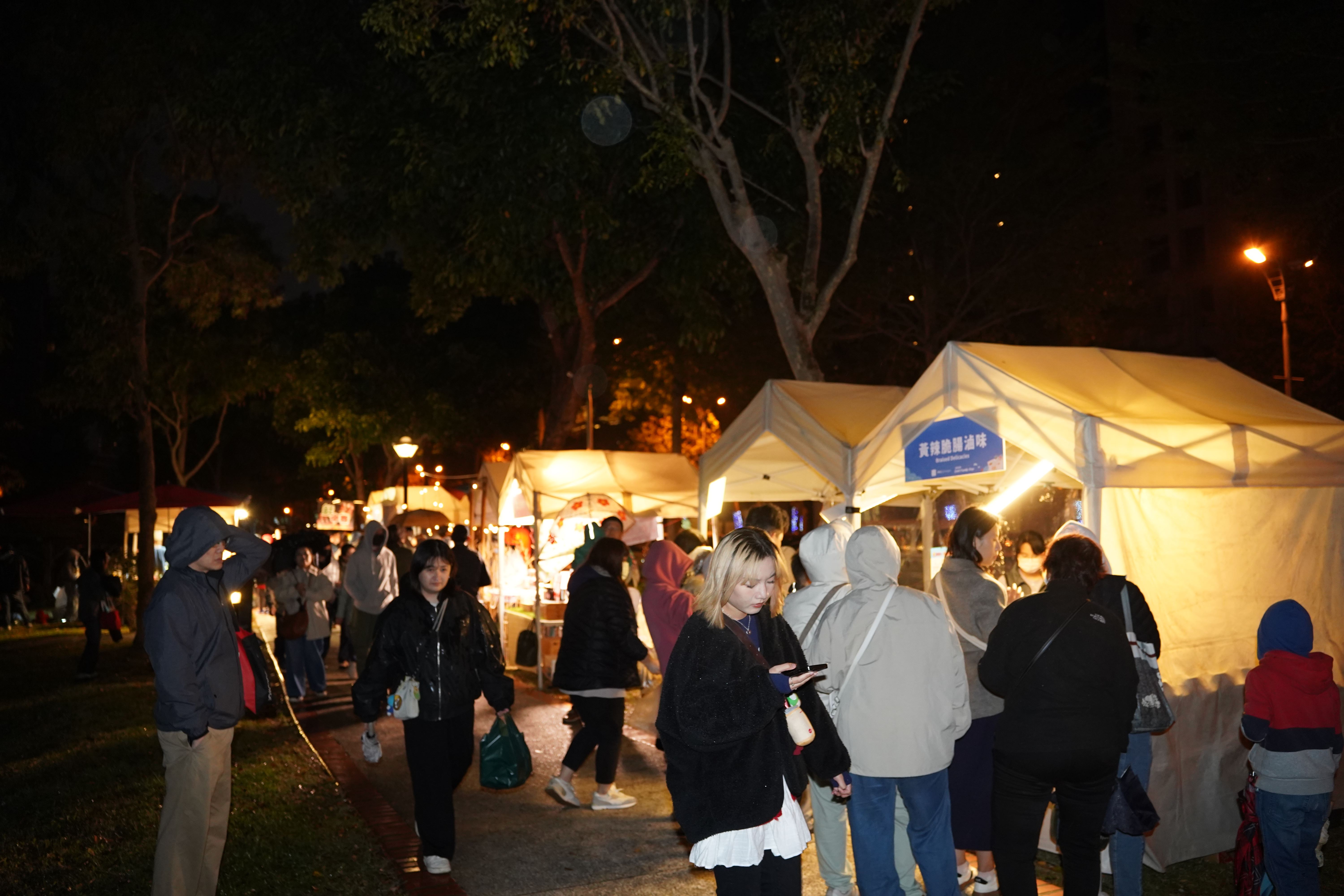 開幕活動自下午起即相當熱鬧,街頭小丑秀、劍玉小螺絲為開幕儀式暖場,限定美食餐車及市集也吸引不少民眾提前到場。入夜後,守夜人、海豚刑警、JOYCE就以斯及9m88等深受年輕族群喜愛的音樂卡司接力登場,以青春又浪漫的音樂與水岸光影呼應,替光藝節點亮最具儀式感的序幕。活動現場推出限量的「一閃一閃亮晶晶」手燈,隨著民眾陸續點亮,與水岸作品交織成片片星光,也象徵城市與居民共同點亮「光之水脈」。