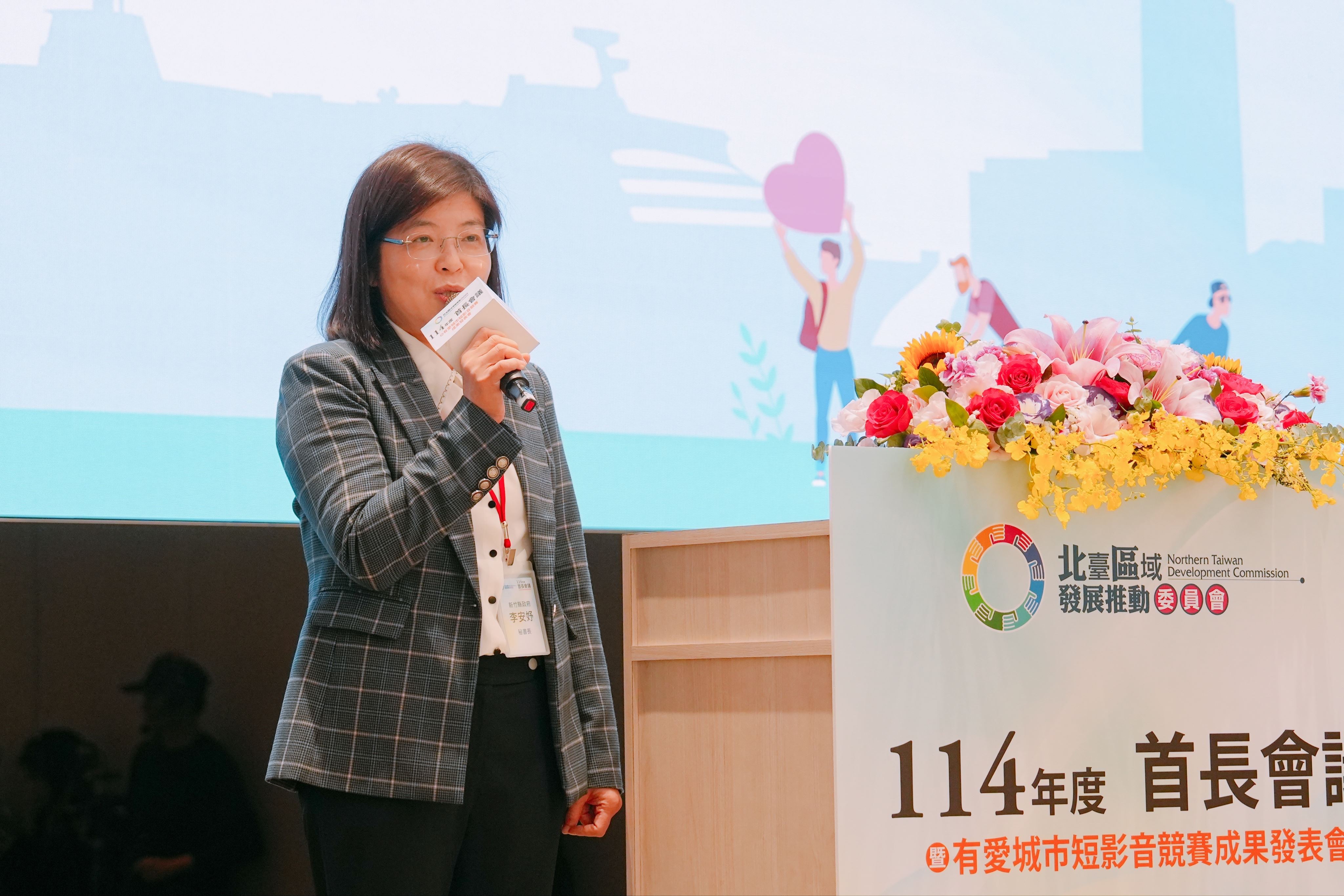 新竹縣政府秘書長李安妤代表致詞時表示,北臺區域發展推動委員會成立22年來,已成為跨縣市合作最重要的平臺,讓八縣市在面對人口結構變化、產業轉型與氣候變遷等挑戰時,能透過區域整合與治理創新,打造具韌性且競爭力的生活環境 。
