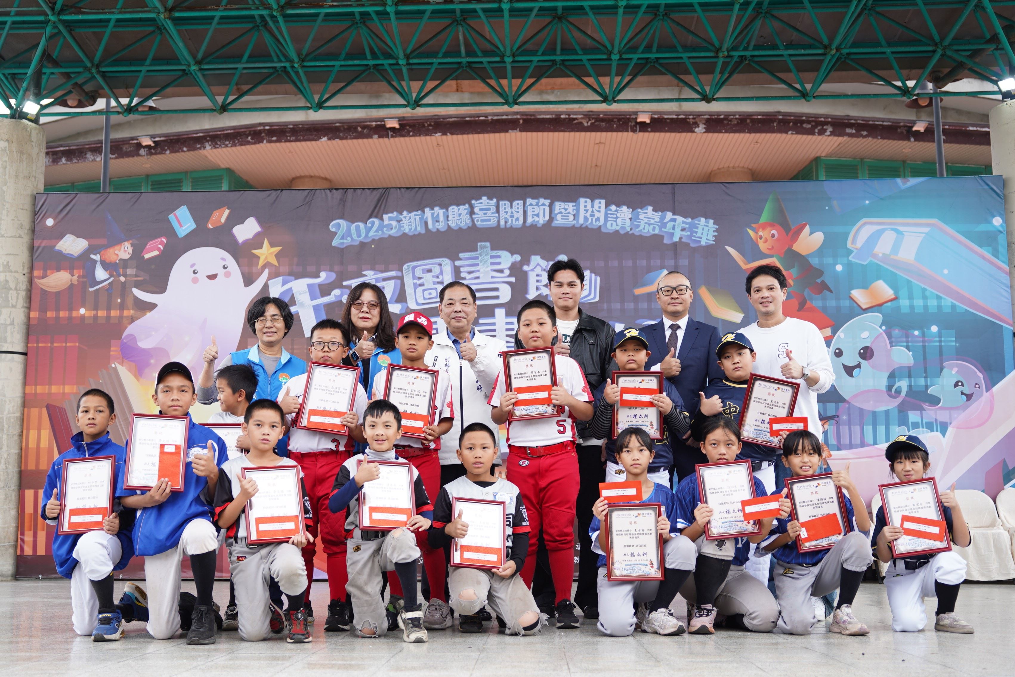 此外,今天上午亦舉行閱讀與終身學習表揚活動,邀請球星宋晟睿參加並頒發球芽基金獎學金、推動閱讀有功學校、公共圖書館借閱績優、終身學習及家庭教育績優團體、樂齡學習志工及兒童文學獲獎者等,感謝各界長期投入,共同為新竹縣閱讀教育扎根。