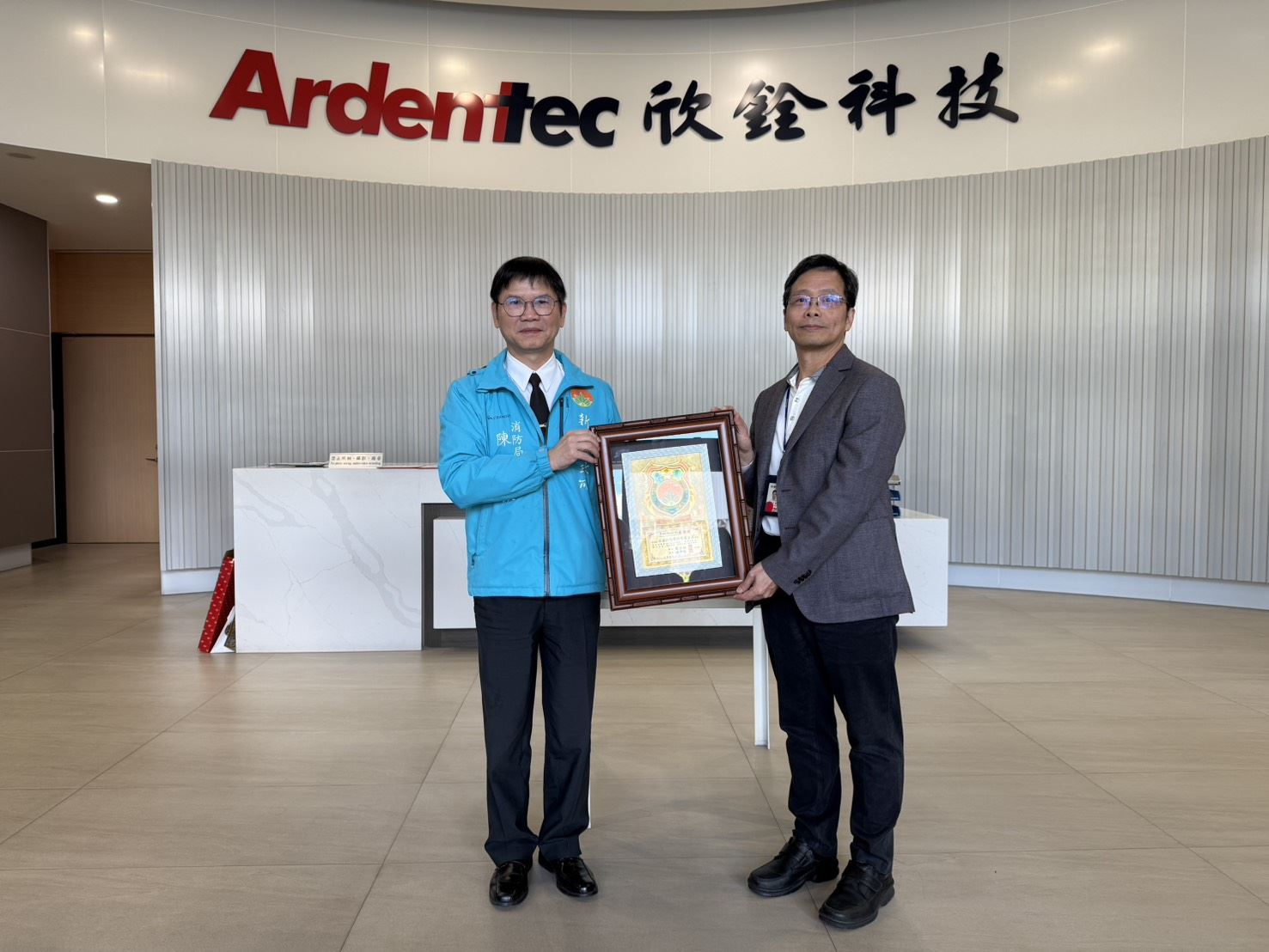 位於湖口工業區內的欣銓科技股份有限公司,捐贈新竹縣政府消防局AED回饋型貼片共計100片,總價值新臺幣26萬元,12月29日上午在欣銓公司辦理捐贈儀式,由消防局長陳中振代表接受,展現企業回饋社會、守護公共安全的具體行動。