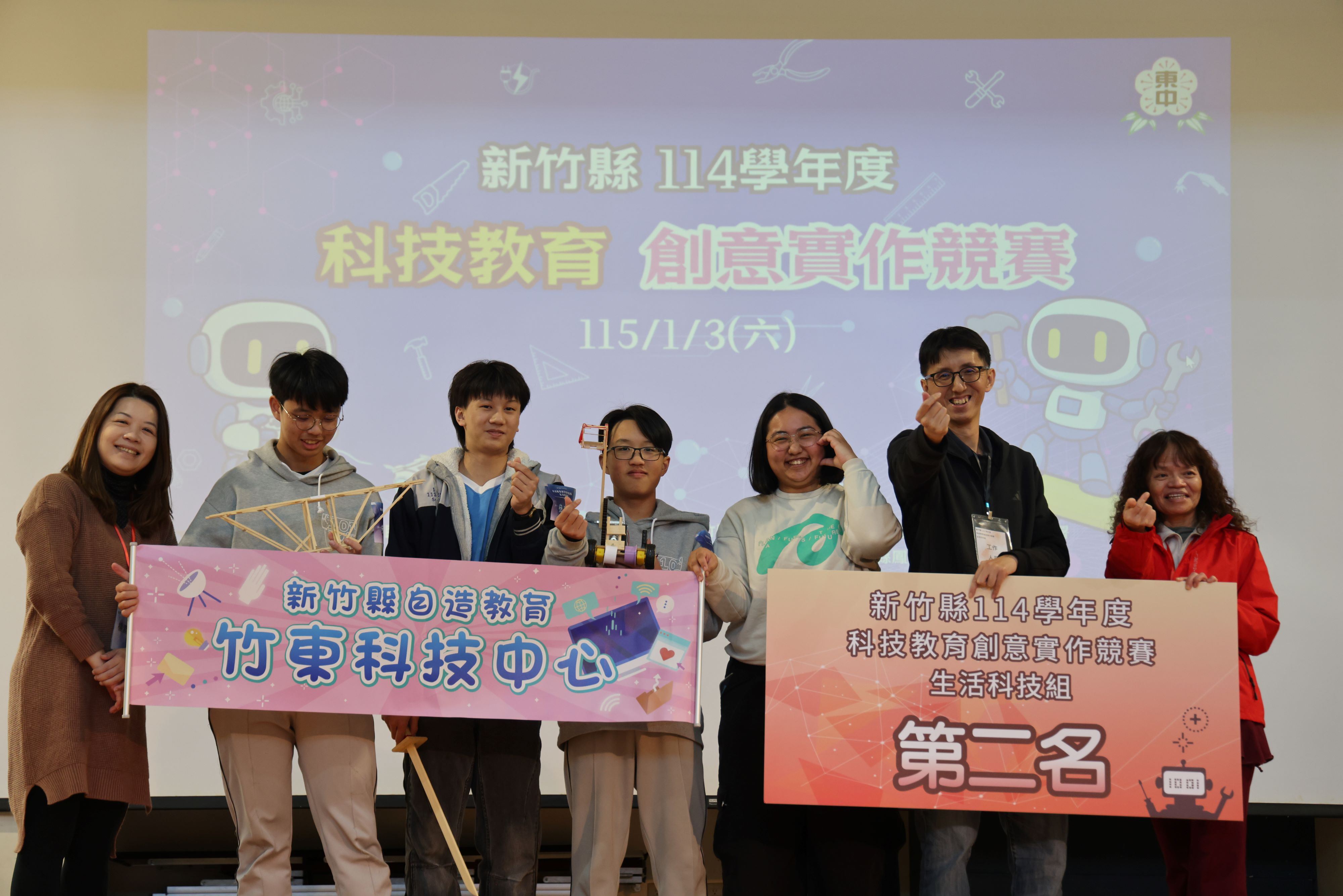 新竹縣政府教育局與勞動部勞動力發展署桃竹苗分署共同主辦的「新竹縣114學年度科技教育創意實作競賽—生活科技組」,於1月3日在竹東國中活動中心盛大舉行 ,吸引全縣國中共計24隊菁英隊伍同場競技,在歷經長達4個半小時的現場實作與激烈測試後,充分展現了新竹縣學子在「智慧城市」願景下,解決複雜科技問題的卓越能力與工程設計思維 。