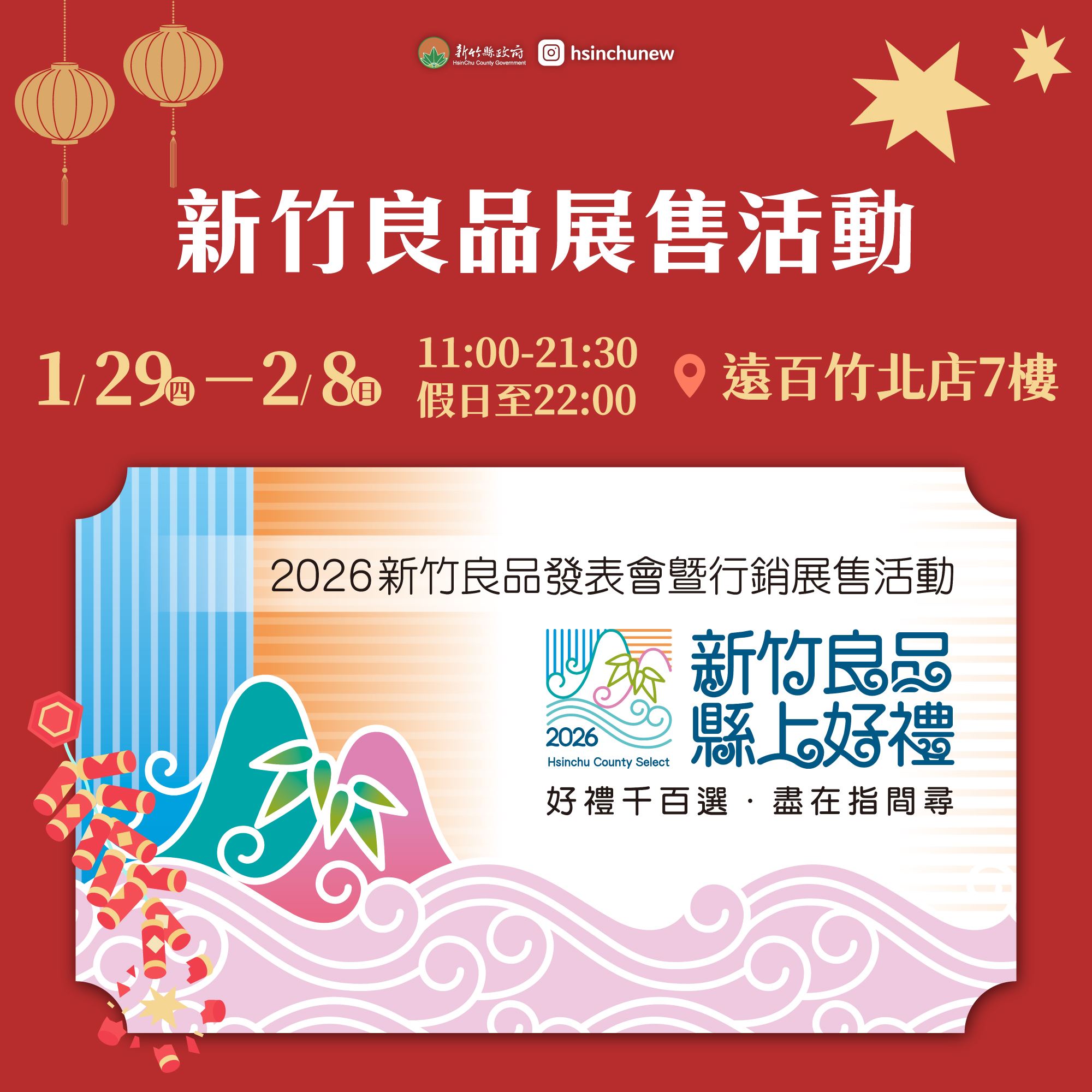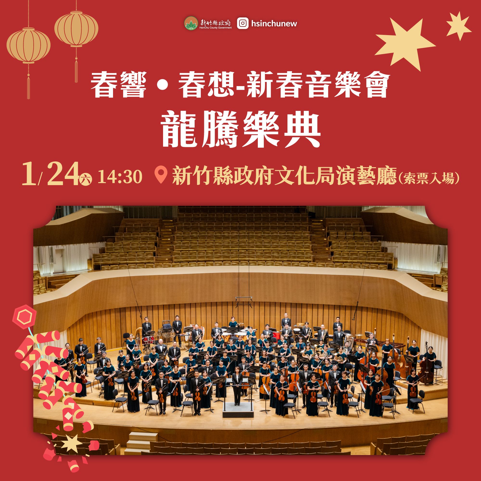 系列活動首先由「春響‧春想—新竹縣新春音樂會」揭開序幕,1月24日於文化局演藝廳演出〈龍騰樂典〉,1月25日接續推出〈原客唱響〉,透過精緻音樂饗宴,傳遞新春祝福,兩場音樂會即日起線上免費索票。1月29日至2月8日則於遠百竹北店7樓舉辦「新竹良品展售活動」,集結在地優質品牌與特色產品,提供民眾年節採購好去處。