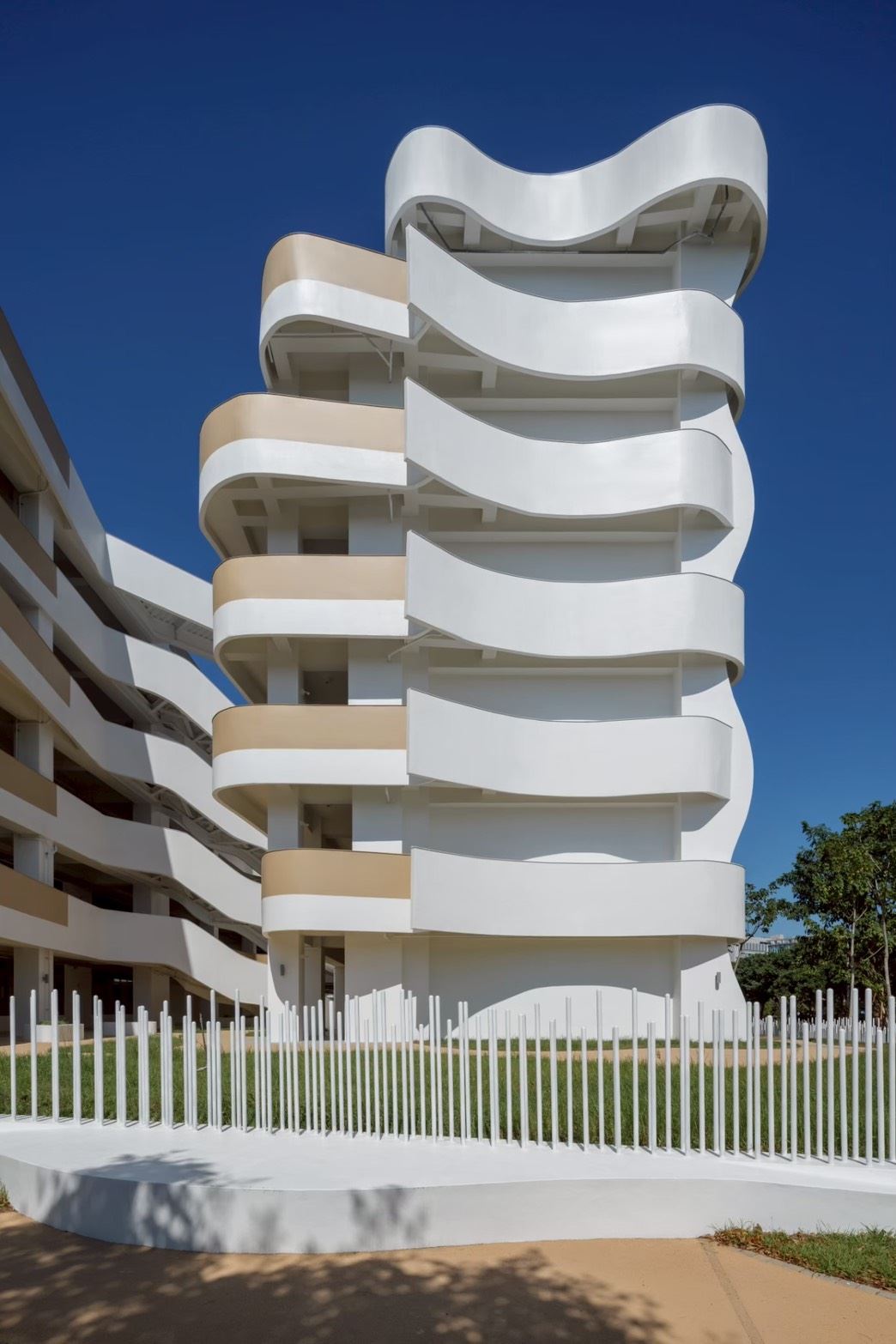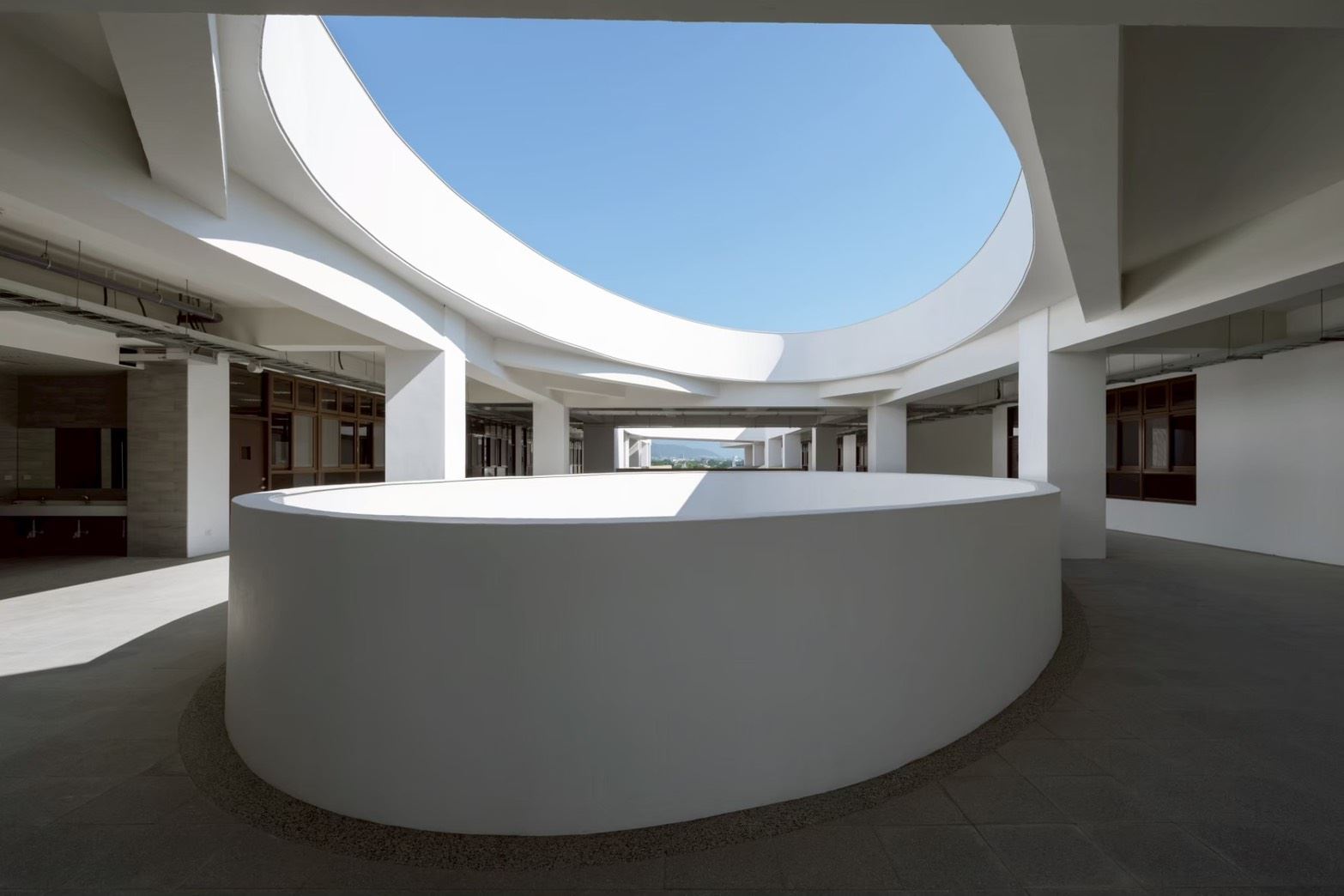 竹北市文中二校舍興建工程,總經費13億7847萬元,以校園建築作為教育理念的延伸,透過「曲線」與「編織」的意象,打造兼具文化深度與學習啟發的校園環境。客家竹編織的概念成為校園美學的核心語彙,象徵大自然、文化傳承與生活智慧的結合,更體現文興國中強調的「扎根在地、開展世界」的教育精神。
