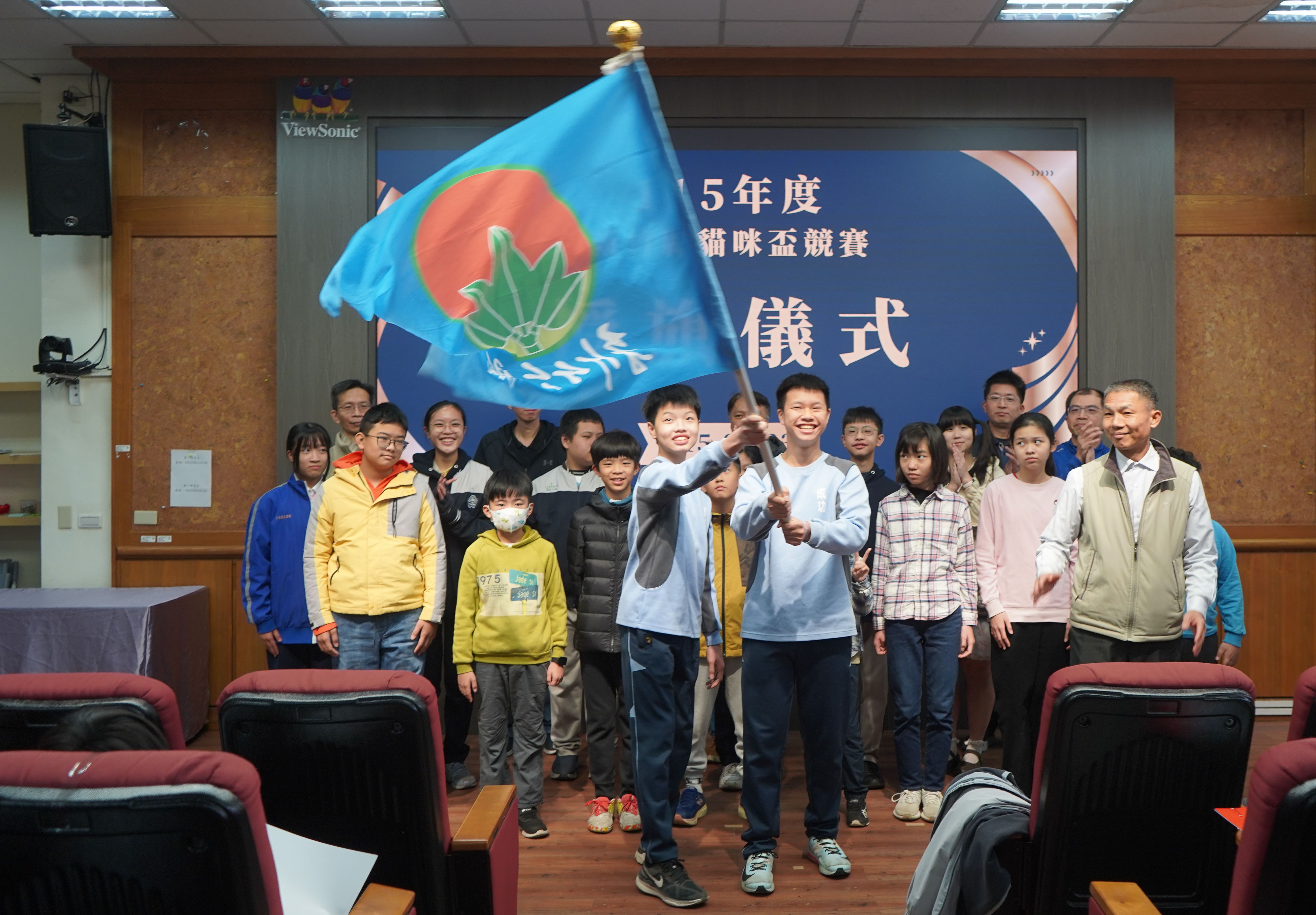 在授旗儀式中,由林副局長將象徵榮譽的縣旗授予代表選手,代表隊選手在全場師生的見證下,將以最佳狀態迎接挑戰,這8支精英隊伍將於4月10日至11日,代表新竹縣遠征臺東縣參加全國決賽。