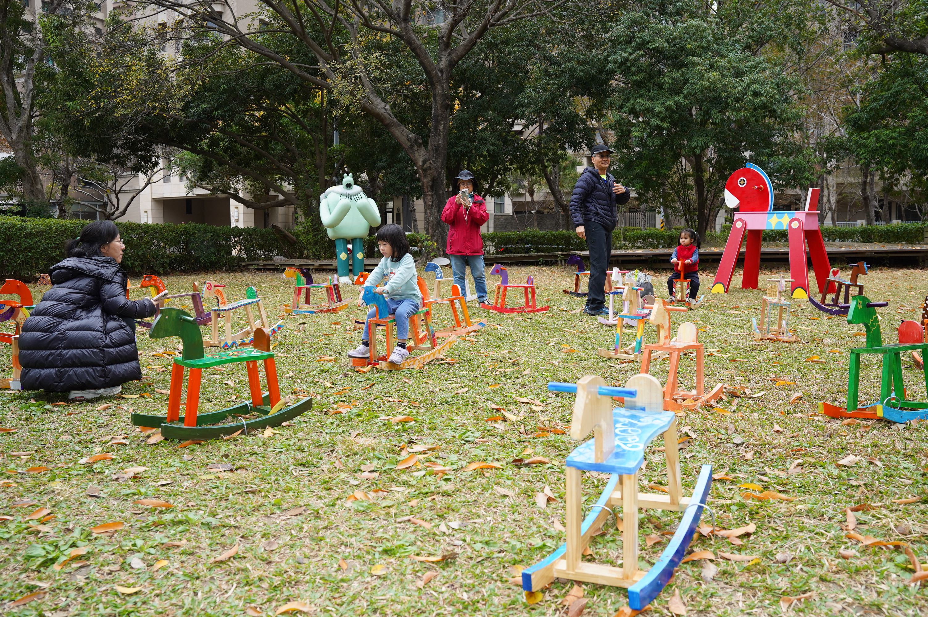 另外,在大草坪設置的「文化 30‧馬兒一起跑」(行的動能),經過代間共創彩繪的搖搖馬裝置,以奔馬意象象徵文化局30年來持續前進的力量,歡迎民眾一同尋找「屬於自己那一年」的馬兒。