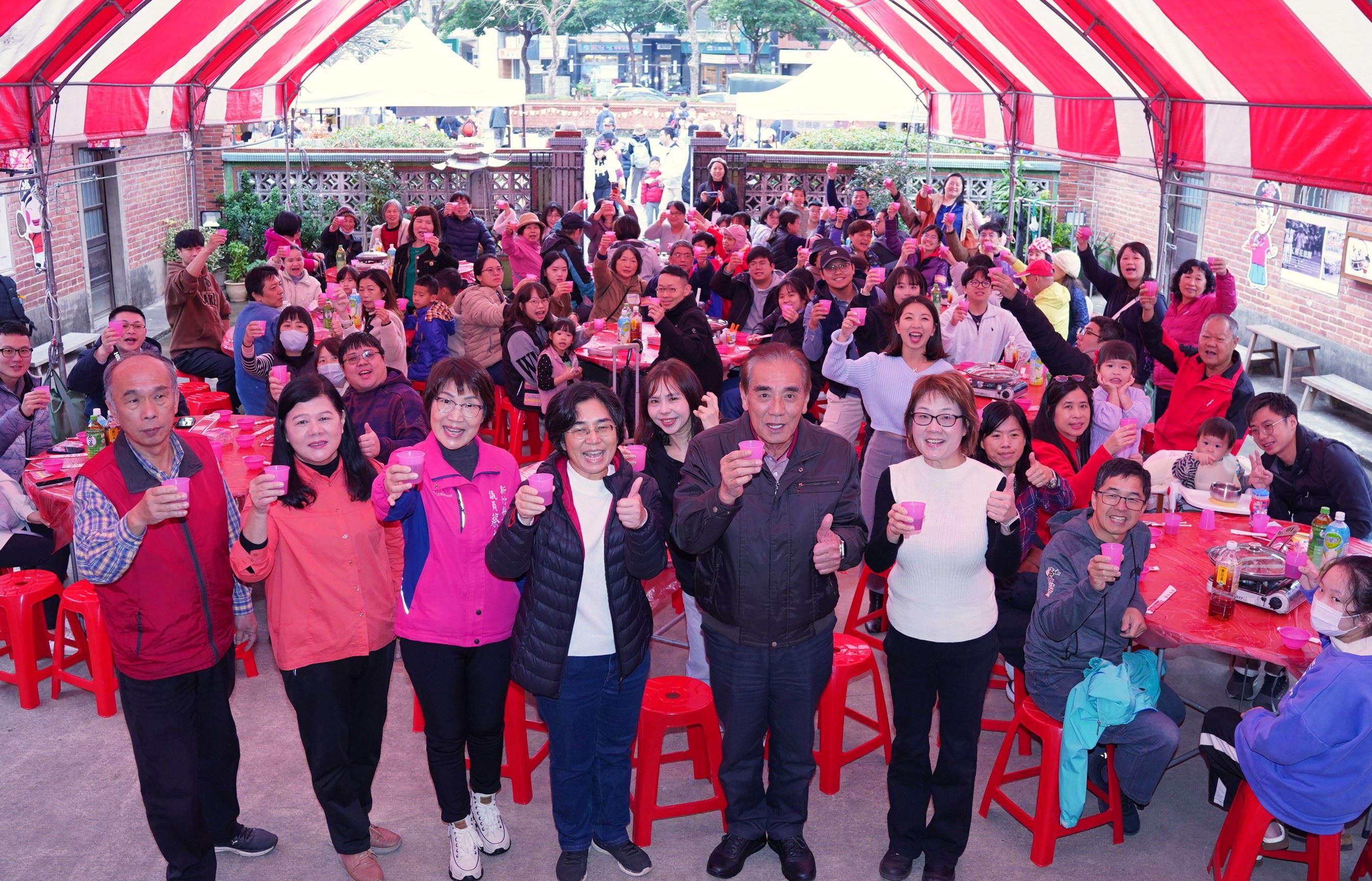 農曆新年將至,新竹縣年度盛事「2026 福客慶豐年|FULL客人生」於今(31日)在新瓦屋客家文化保存區隆重登場,特別以「家」為核心,結合客家傳統慶典與現代創意元素,現場有春味市集、春聯揮毫等,副縣長徐元棟也到場與參加開春宴辦桌民眾一同舉杯宣告活動正式啟動,歡迎大家攜手來新瓦屋走春,感受濃濃年節氣氛。