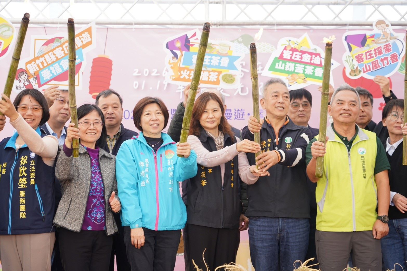 新竹縣政府輔導縣農會以以「客庄慢遊·幸福食光」為主題,結合在地農業與觀光資源,規劃6條多元且具特色的客家食農教育遊程,帶遊客走進產地體驗竹縣農村文化。今(19)日在新埔大墩山食農體驗園區舉辦的記者會用「油笐火」揭開序幕,象徵客家生命力與文化傳承,出席貴賓搶先體驗踩鹹菜、封罐,認識代代相傳的客家醃漬智慧。縣長楊文科邀請大家來竹縣客庄慢遊、享受幸福食光。