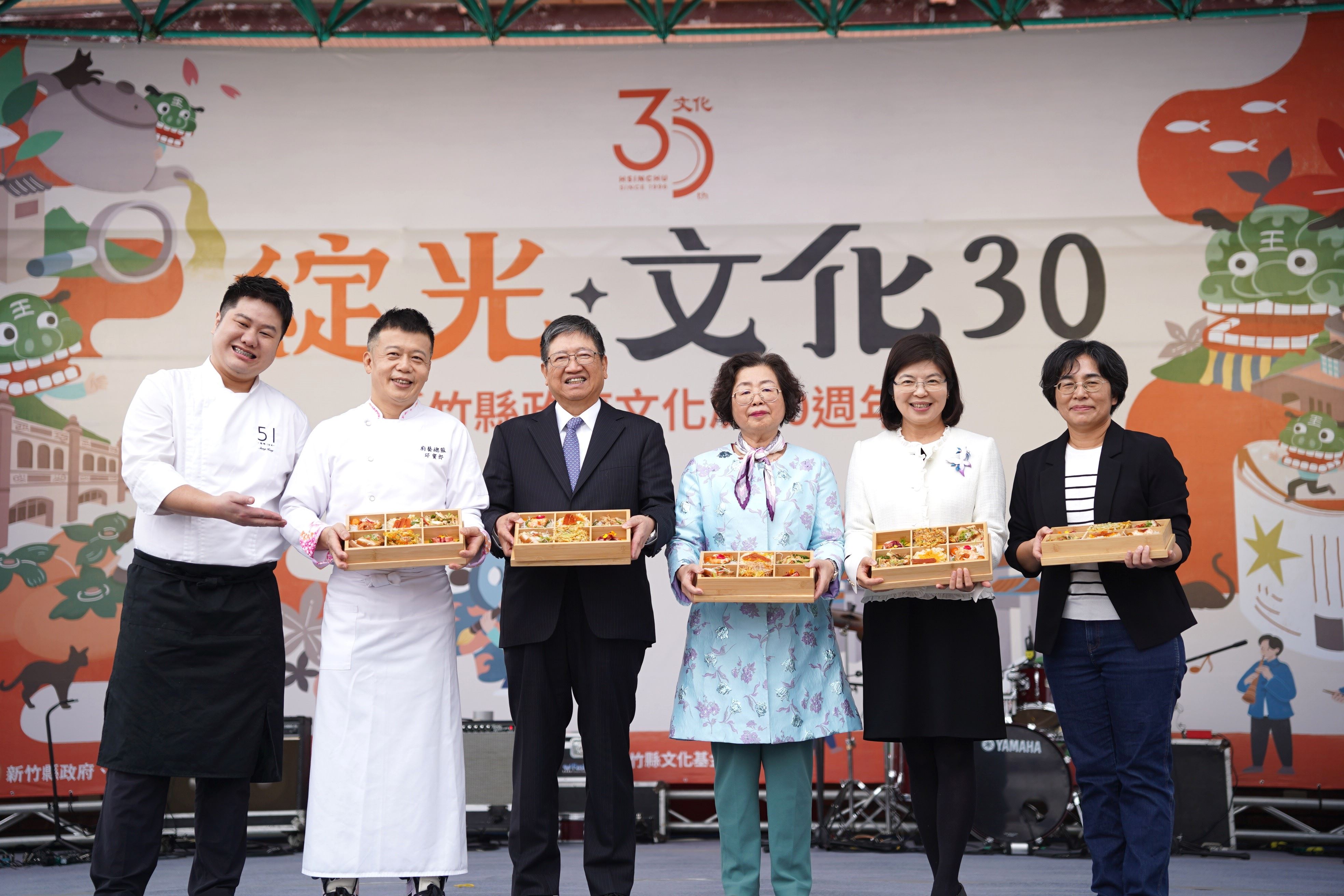 新竹縣政府文化局今(3月4日)舉行「綻光30」文化聚場暨藝文人士餐敘局慶活動,透過在地客家主廚精心設計的特色料理餐盒及多元藝文表演,款待來自各界的藝文人士,展現新竹縣豐富多元的人文藝術能量,也展現新竹縣的藝文軟實力。