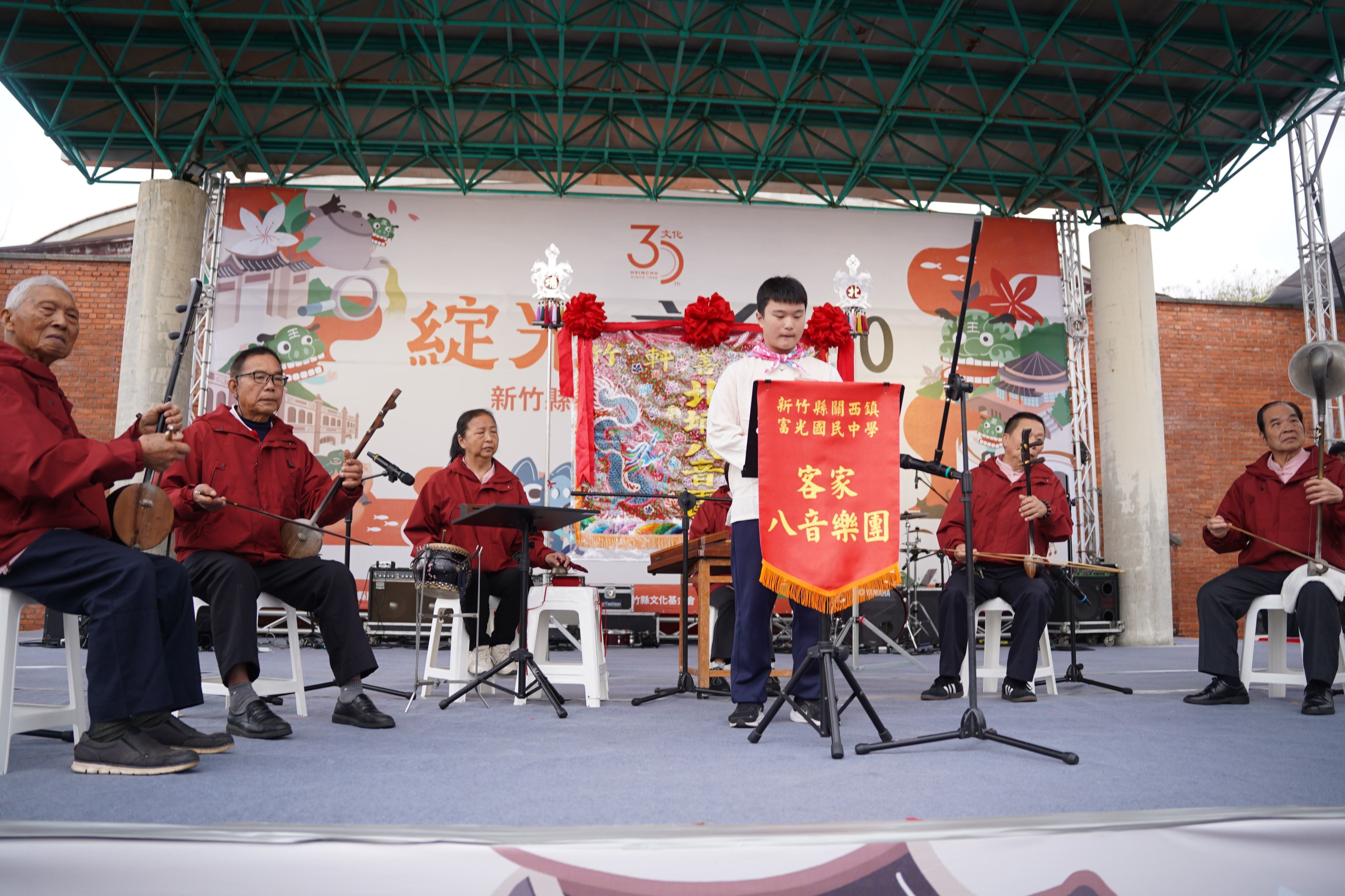 新竹縣政府文化局長朱淑敏表示,「綻光30」文化聚場以文化傳承為核心理念,活動由田屋北管八音團、新竹北埔八音團攜手福龍國小與富光國中帶來熱鬧的【八音堵班慶30】客家八音匯演揭開序幕;新竹縣武術舞獅協會與東海國小共演【HAKKA獅鬧棚迎貴客】,熱情迎賓;光明國小與築夢舞集以「魅麗竹縣」展現節慶風華;桃山國小與金曲歌手謝宇威帶來客原美聲音樂饗宴;壓軸則由金曲獎客家樂團黃子軒與山平快,以多元客家音樂為「綻光30」文化聚場畫下精彩句點。