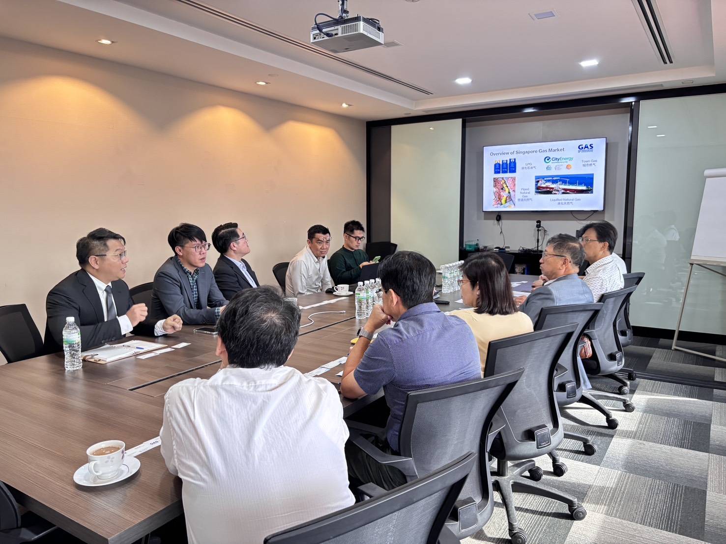 Hsinchu County Magistrate Yang Wen-ke led a delegation of County Government officials and Hsinchu Gas Company employees to Singapore to inspect natural gas energy practices there. Today (August 18), the delegation met with Singapore’s City Energy association and natural gas industry associations. With both Singapore and Taiwan being island nations, and both faced with limited energy resources and moving toward saving energy and reducing carbon, each has a lot to learn from the other. The delegation learned about how Singapore maintains its stable energy supply, keeps storage facilities safe, and is responding to the 2050 Net Zero Carbon Emissions targets – all of which will help Hsinchu Gas Company to enhance construction projects and services.